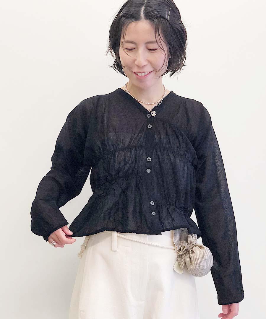 くしゅくしゅとランダムに寄せられたギャザーがポイントの1枚。