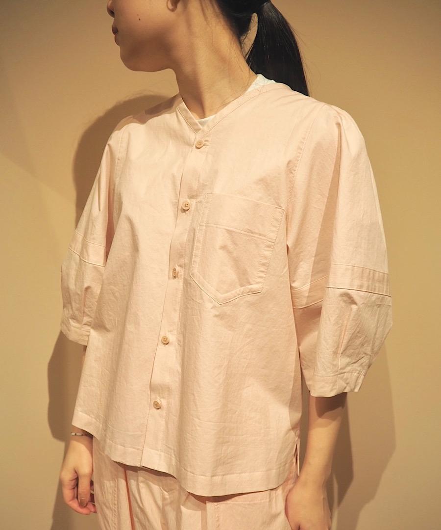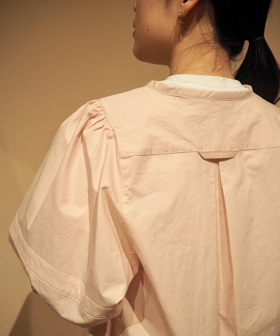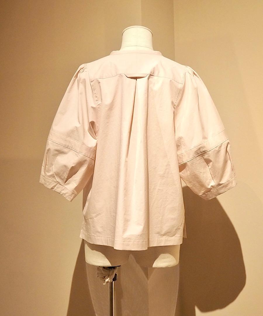 ギャザーとタック、パターンデザインで構築したランターンスリーブのVネックシャツです。