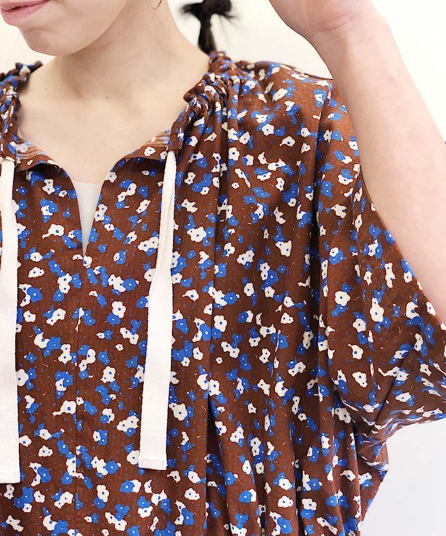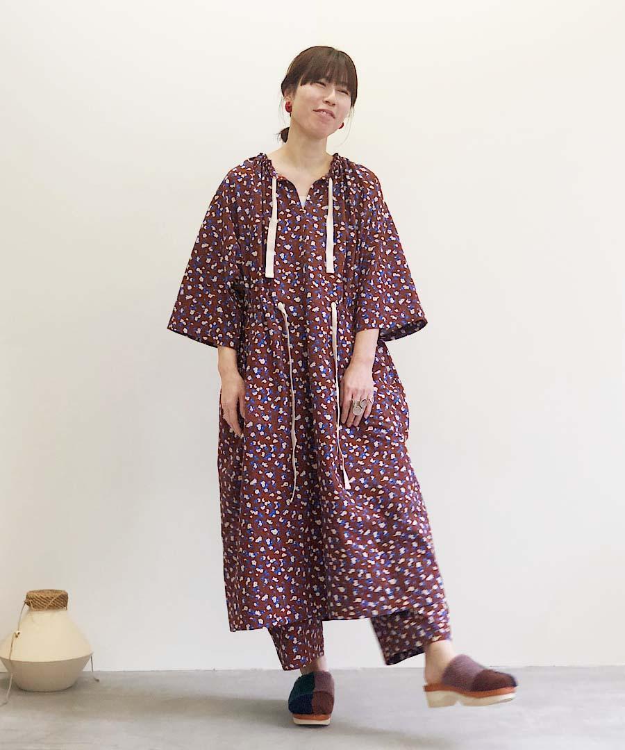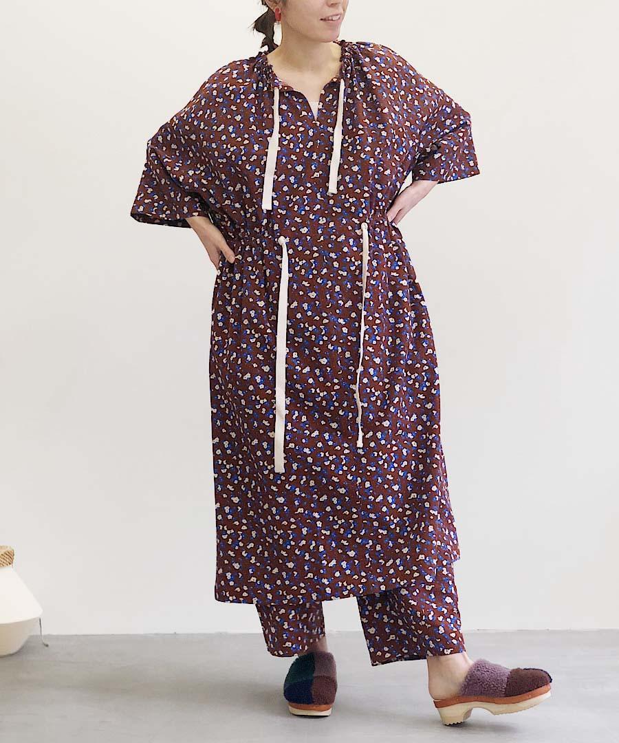 首元とウエストのリボンでギャザーを寄せて着用もできます。