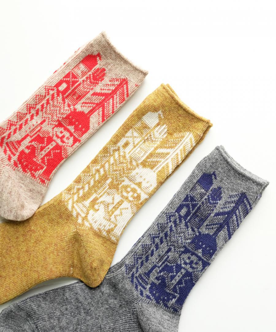くるみ割り人形をモチーフにしたジャガードソックスは、ドイツの森での暮らしをイメージした「森の宿り」というタイトルがつけられています。
