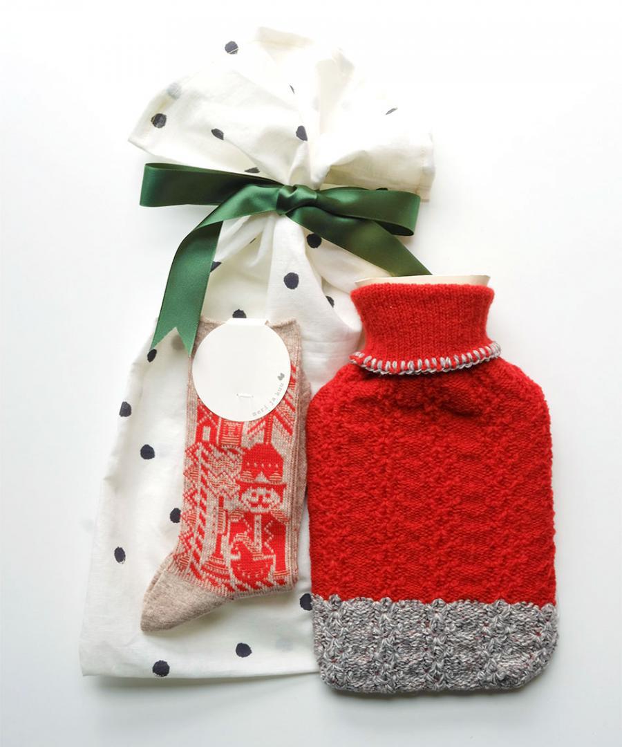 冬じたくやギフトにぴったりな、メリヤクーのソックスと湯たんぽ(カバー付き)のセットを限定数でおつくりしました。
