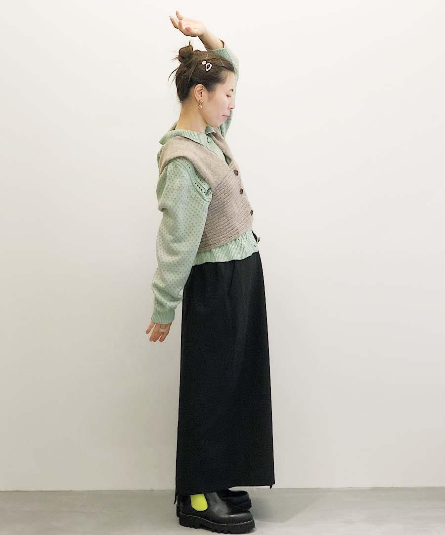不思議な切り替えがポイントのスカート。