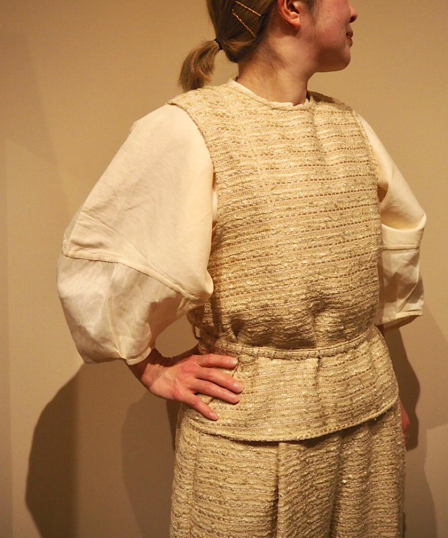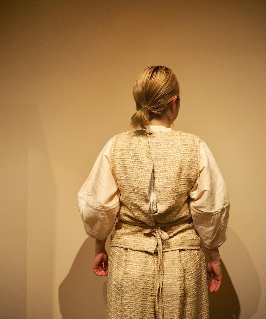 日常は、羞じらいや緊張、可笑しさや軋みなど、曖昧な気分を見つける小さな旅の繰り返しです。そんな不確かで不均等な日々の気分を、男らしい、女らしい、という感覚に捕らわれず時代や物語のイメージを重ねて衣服として表現します。