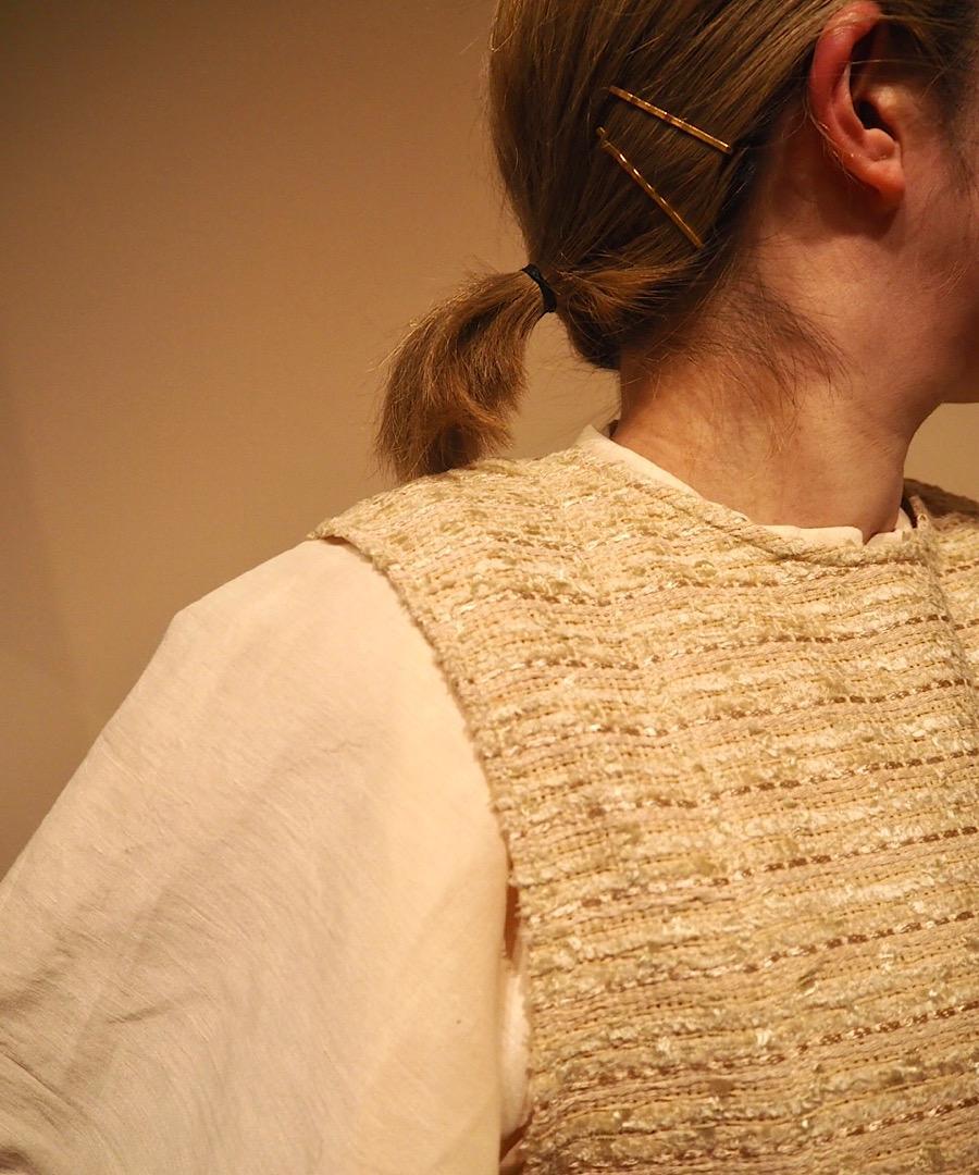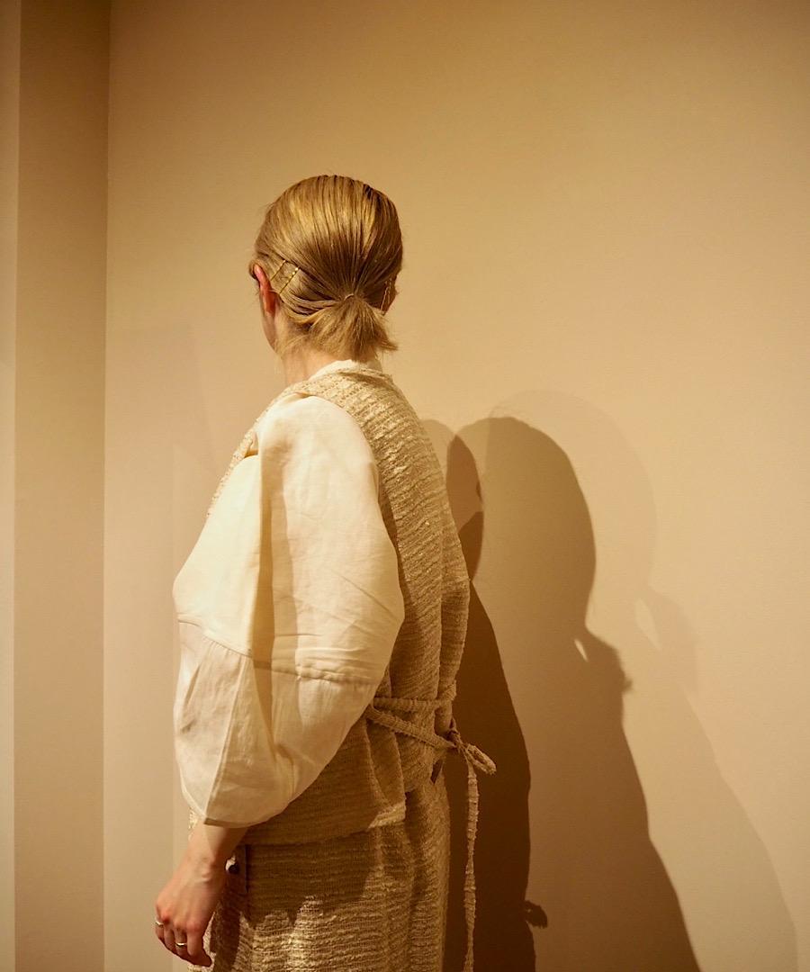 フロントで絞ったり、後ろでまとめたりすることでシルエットのアレンジが可能に。