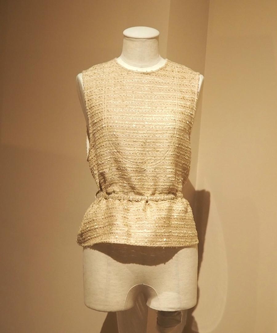 胸元のブザムデザインによる、さり気なくも主張のある切り替えが上品な雰囲気。