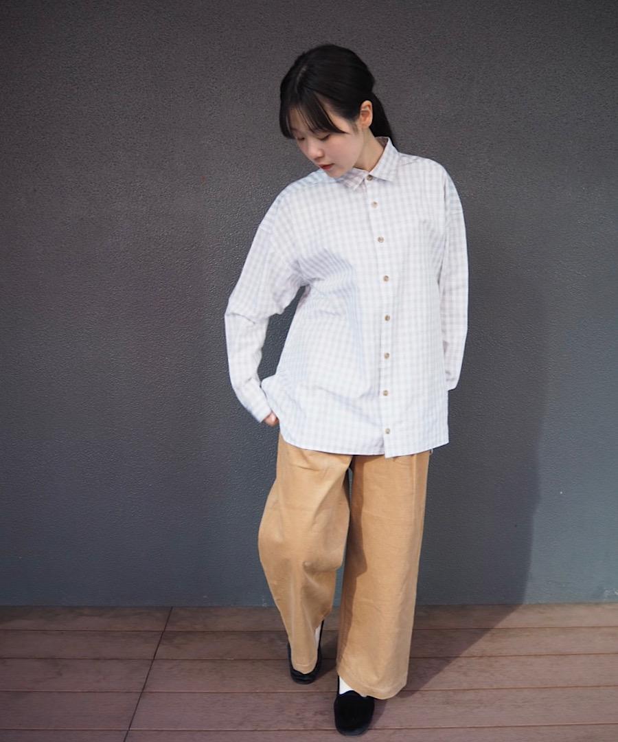 メンズライクなゆったりとしたサイズ感で、そのまま着るのはもちろん、羽織りにしたりと年間着まわしのきくアイテムです。