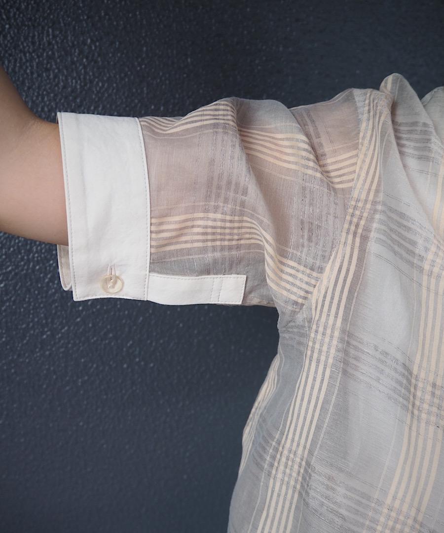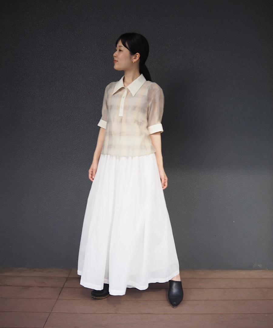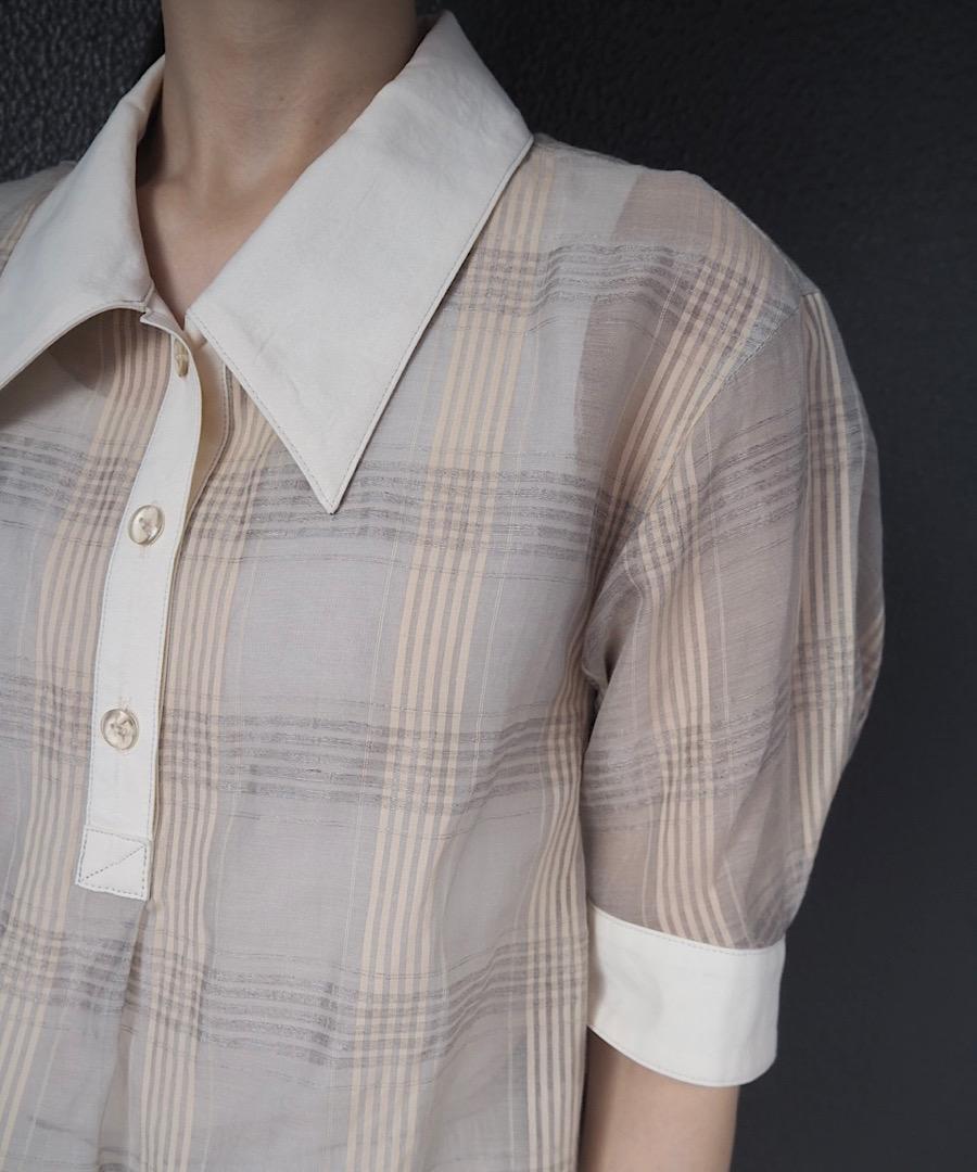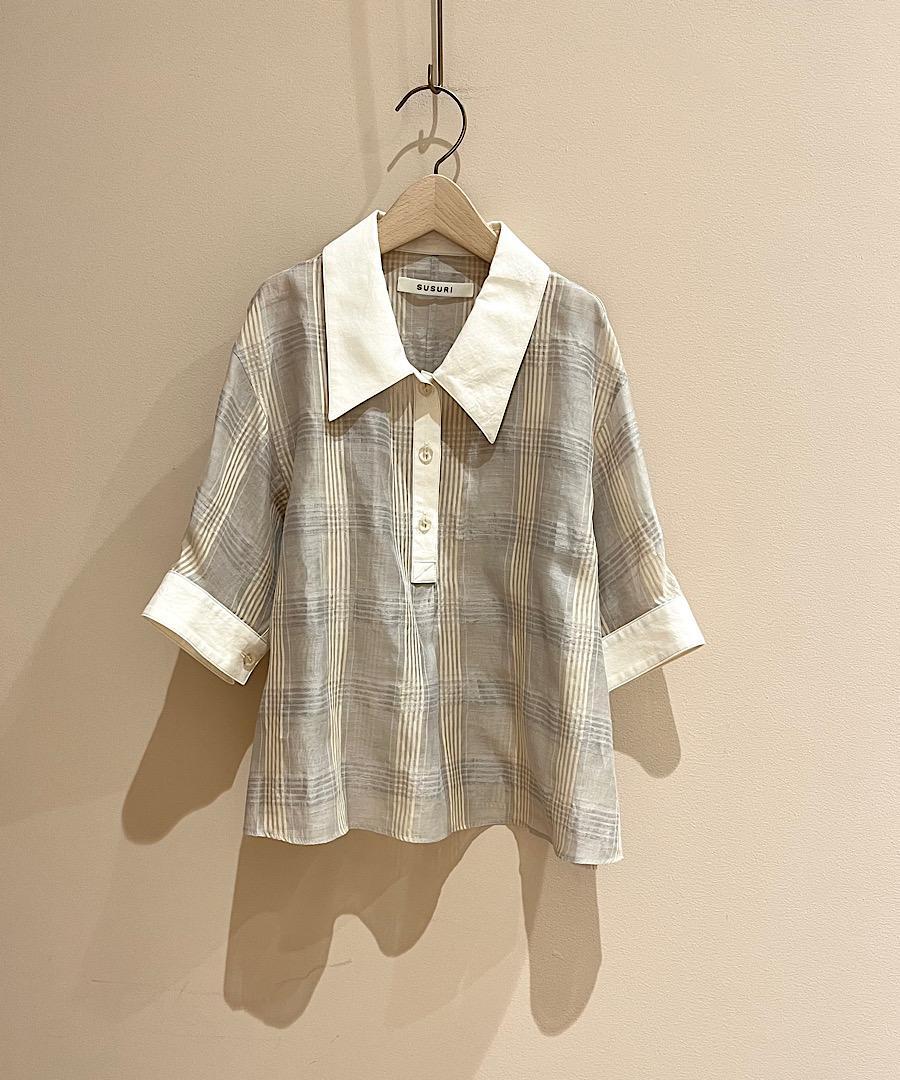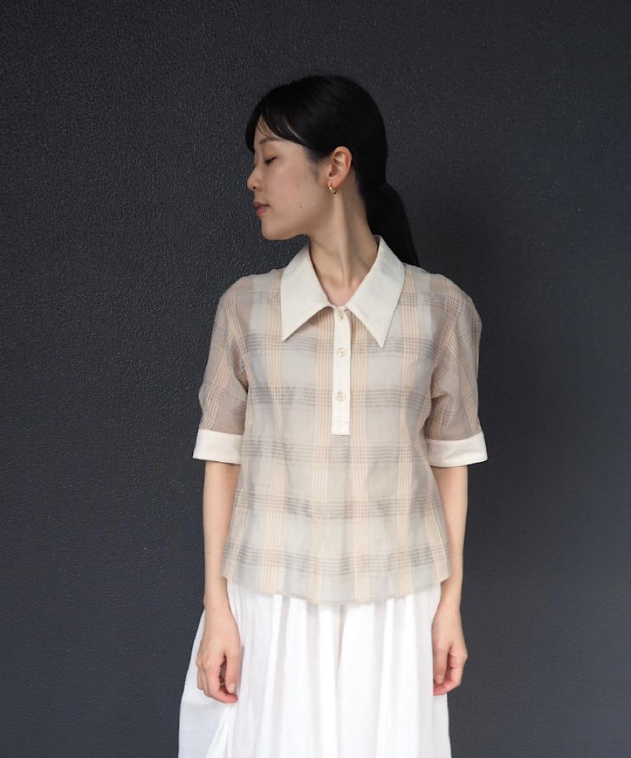 バランスに変化を持たせて、やや誇張した襟とやや短くしたボックスの身頃を組み合わせたアイテムです。