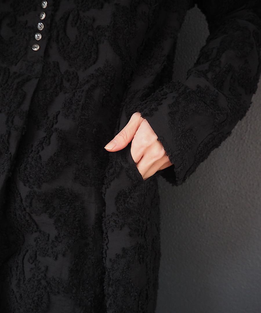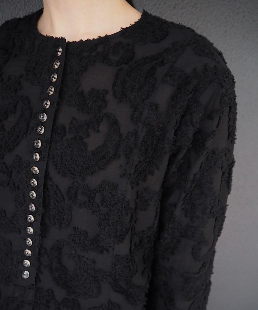 細いナイロンとコットンで織られたペイズリー柄カットジャカードを使用。