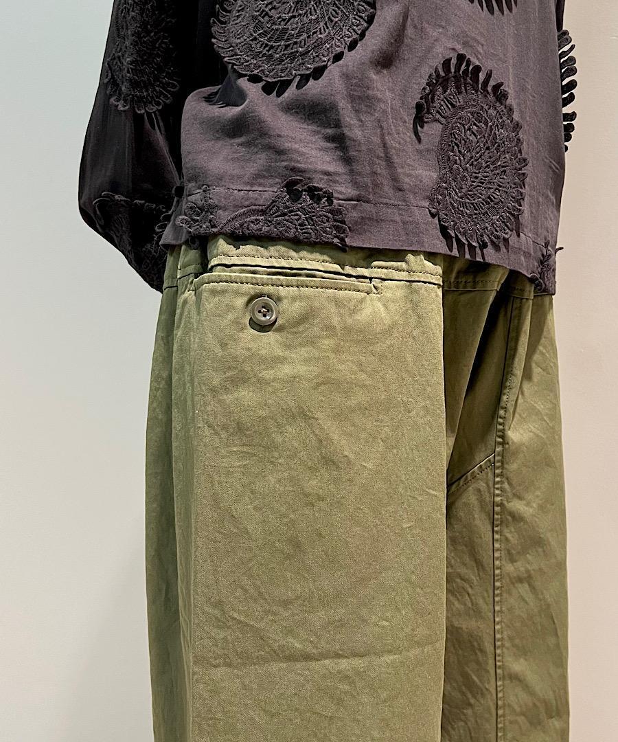 定番のコンパクトチノ素材で、タイパンツをモチーフに。