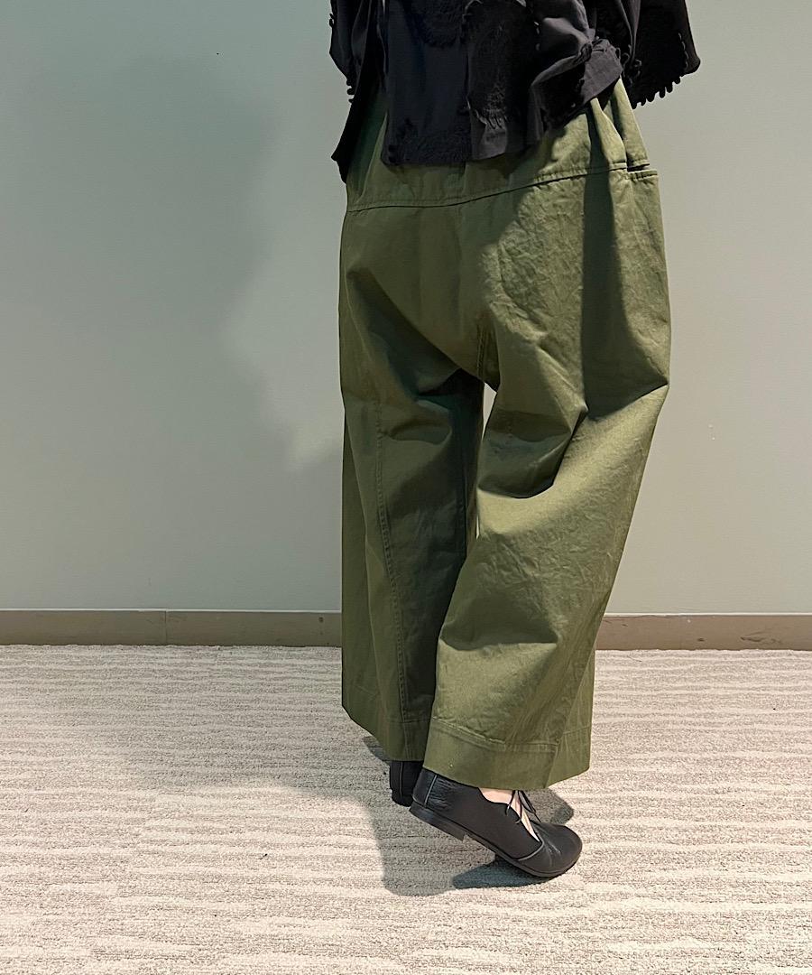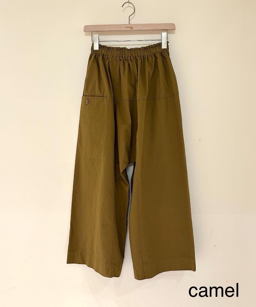 サイドの切り替えがないので、ワイドパンツですがすっきりとしたシルエットです。