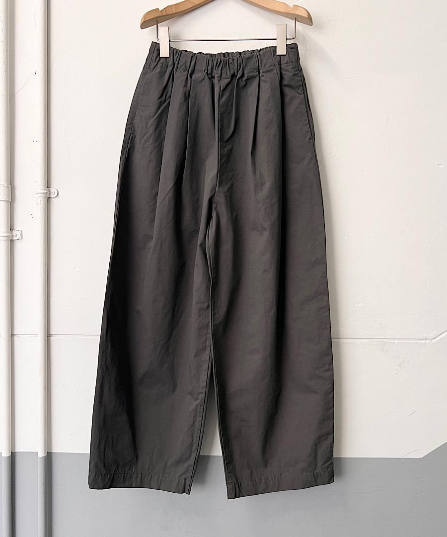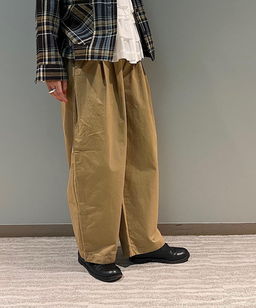 ボリュームのあるコクーンシルエットは、ワイドパンツでありながら