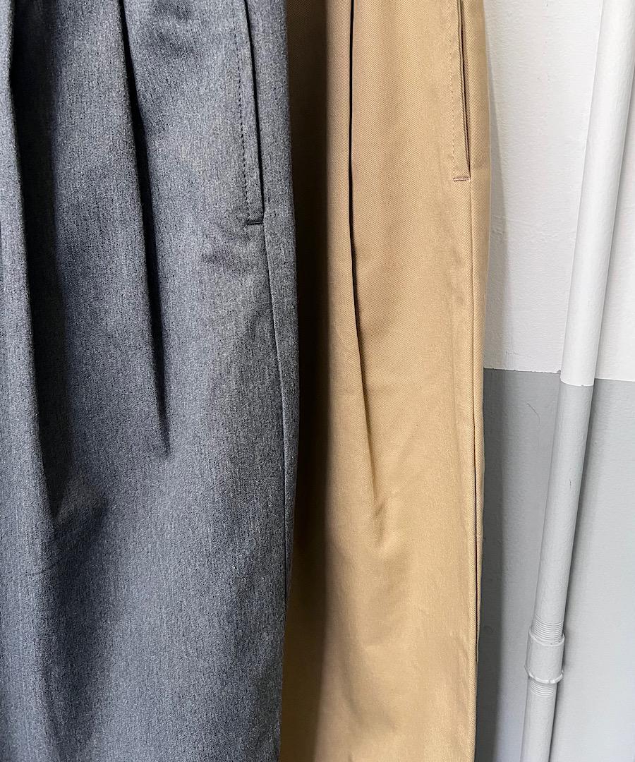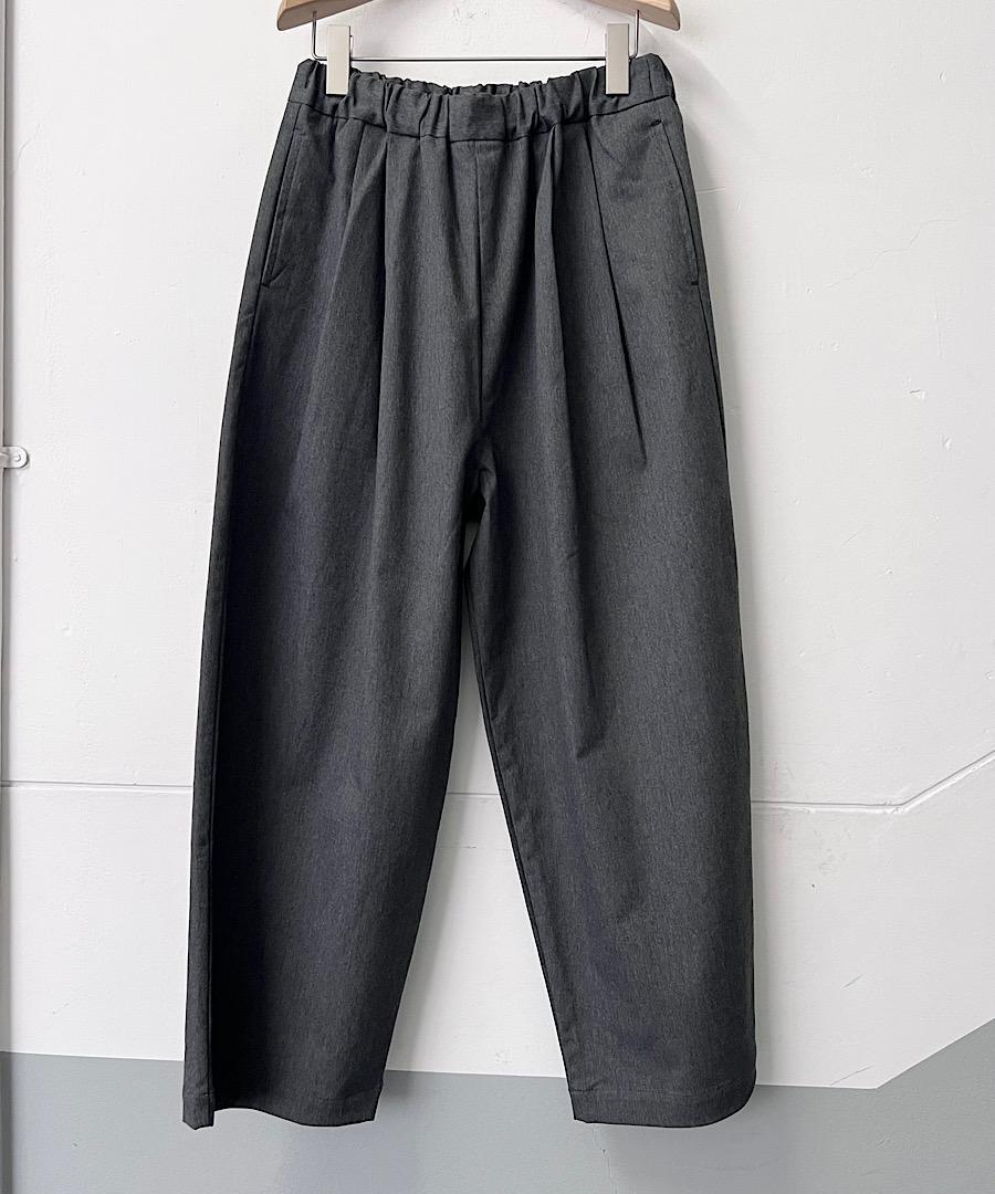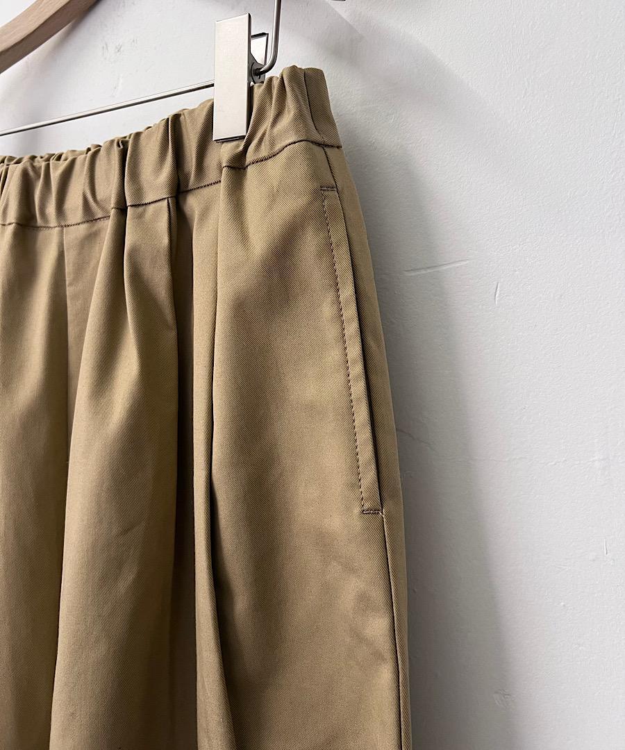 2タックの控えめなコクーンシルエット。