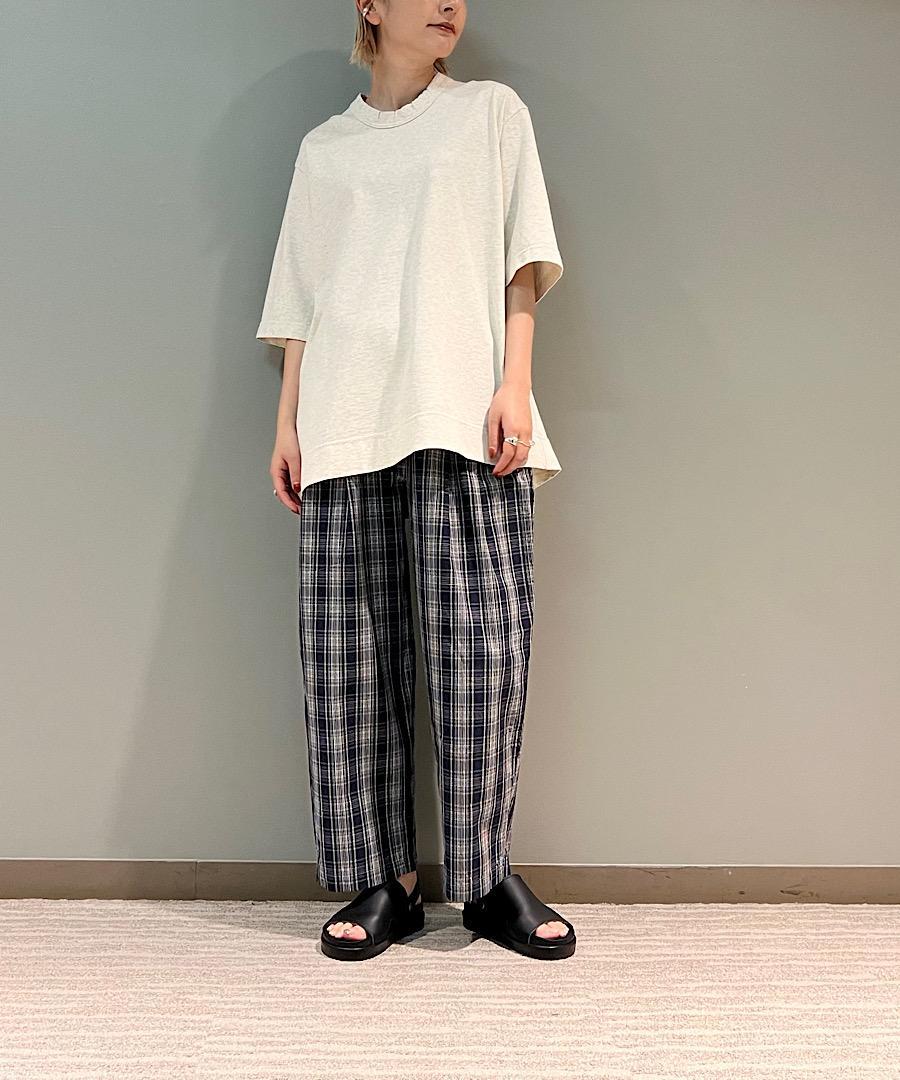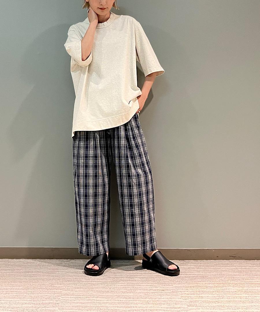 適度なハリ感のある先染めチェックのダンプ素材。