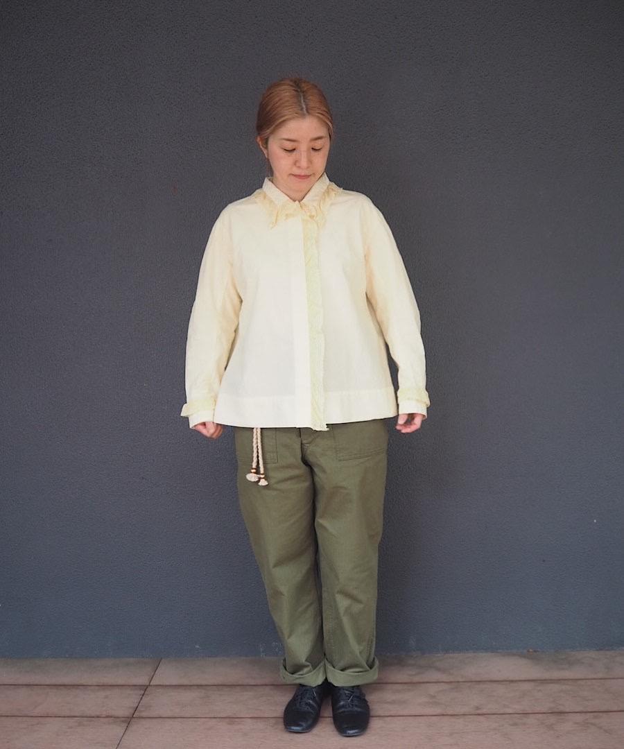 身頃の素材はシルク混のコットンタイプライターを使用。