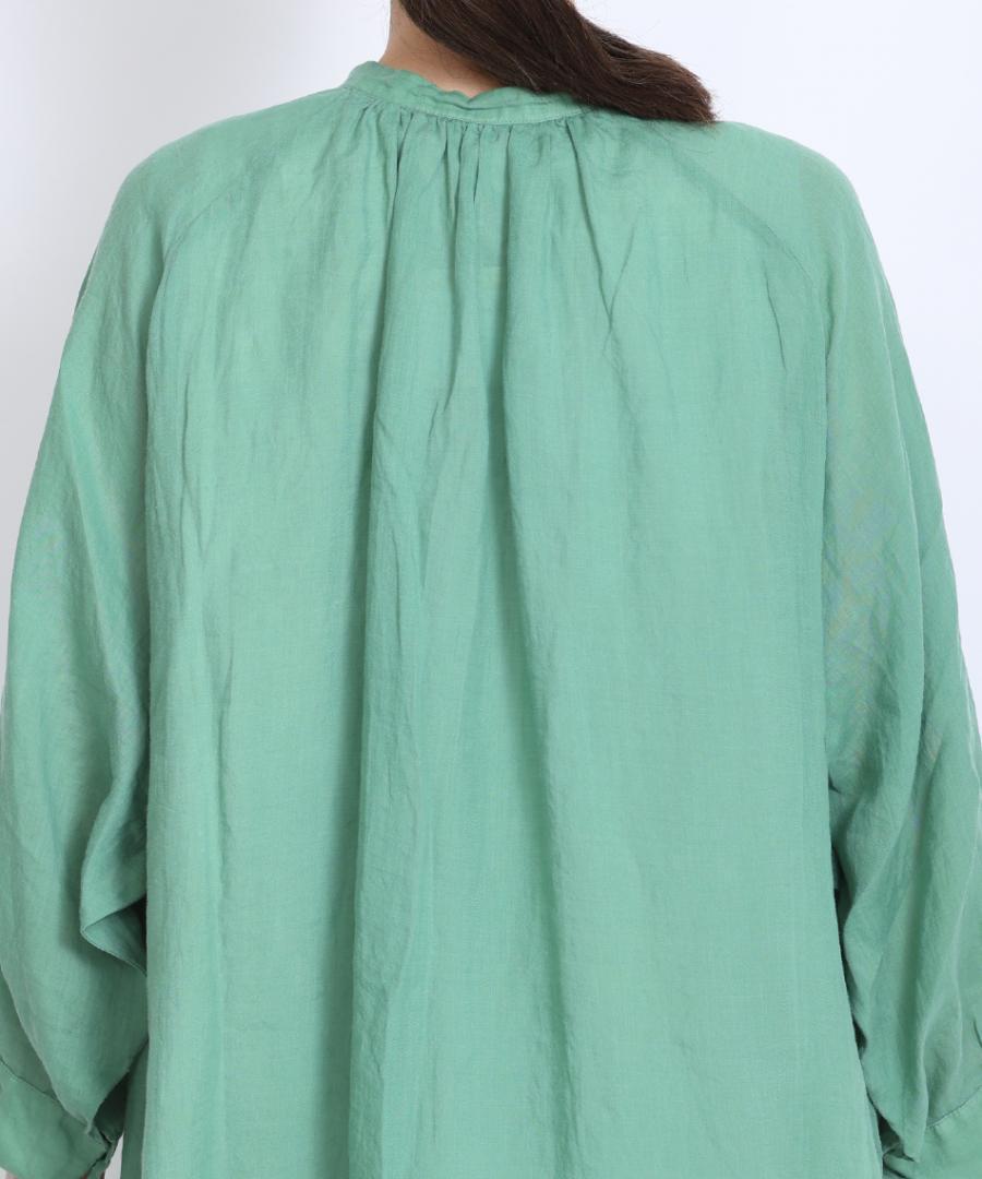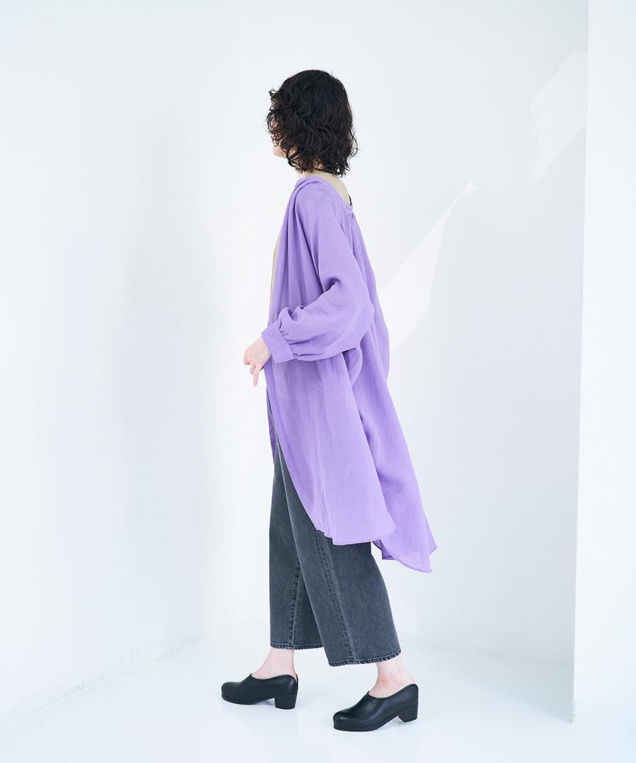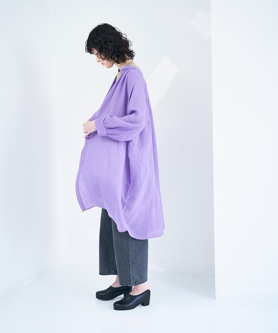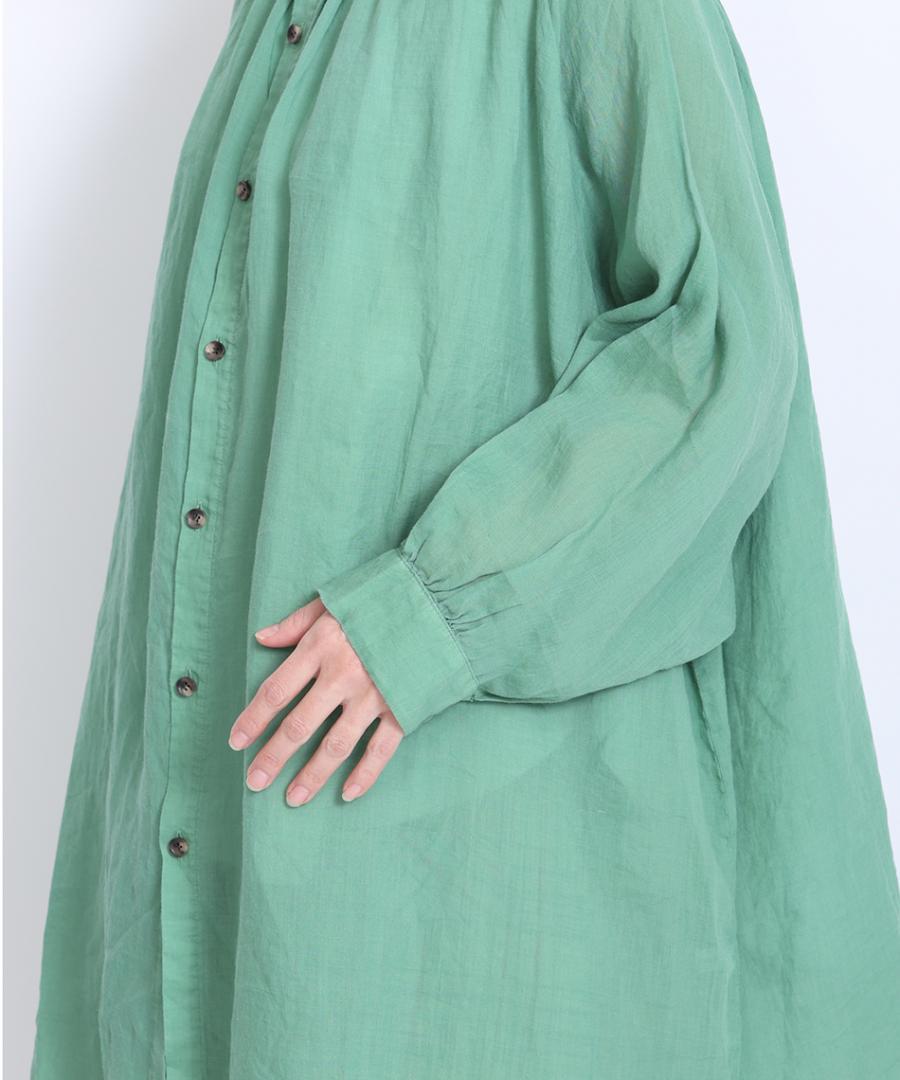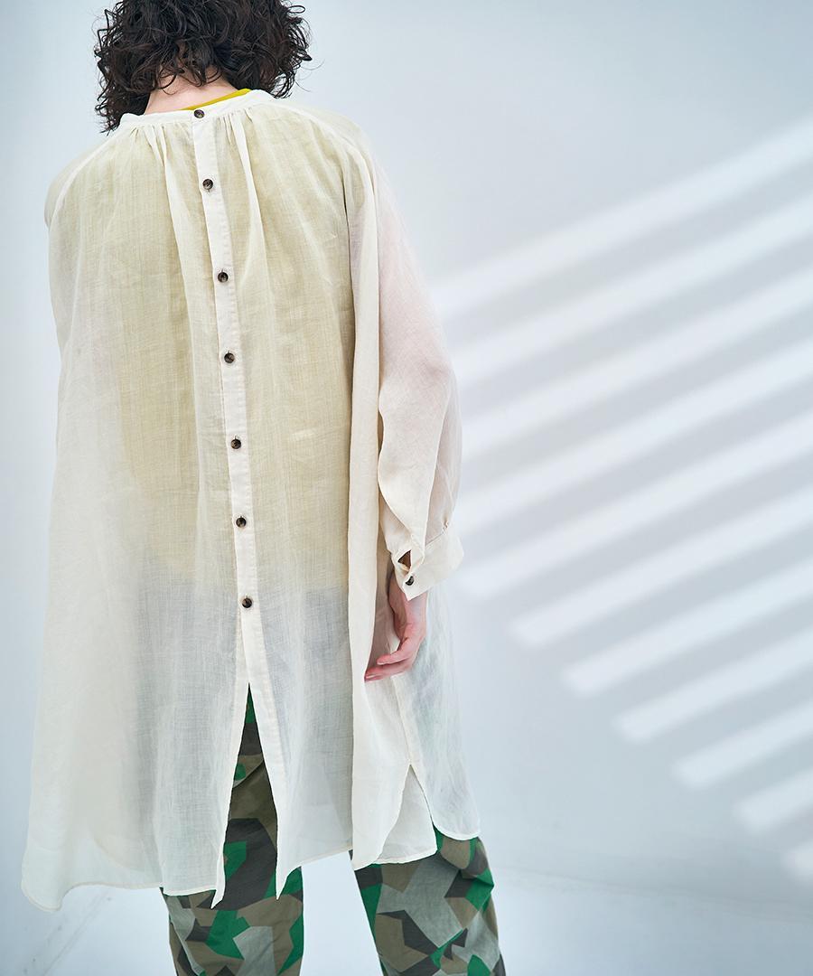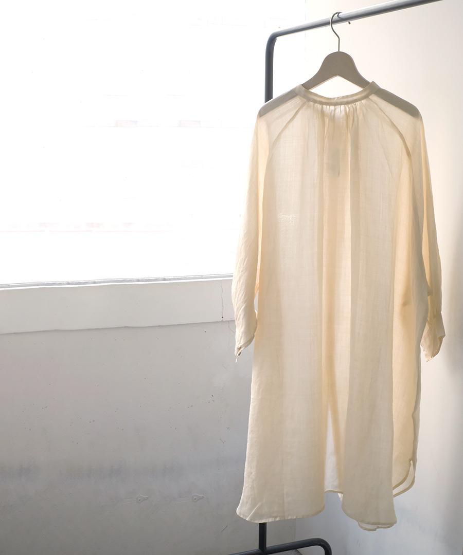 非常に繊細で上質感のあるラミーローン素材で仕立てたシャツワンピース。