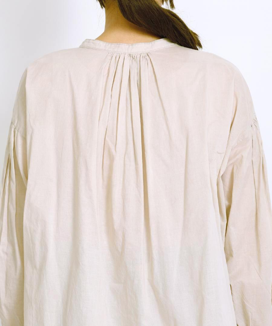 薄手でありながら程よいハリ感があり、ふんわりと軽い風合いのコットンローン素材で仕立てたブラウス。