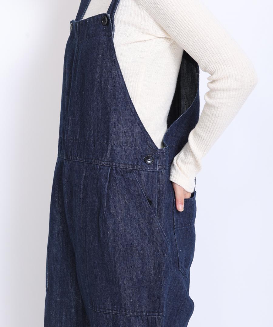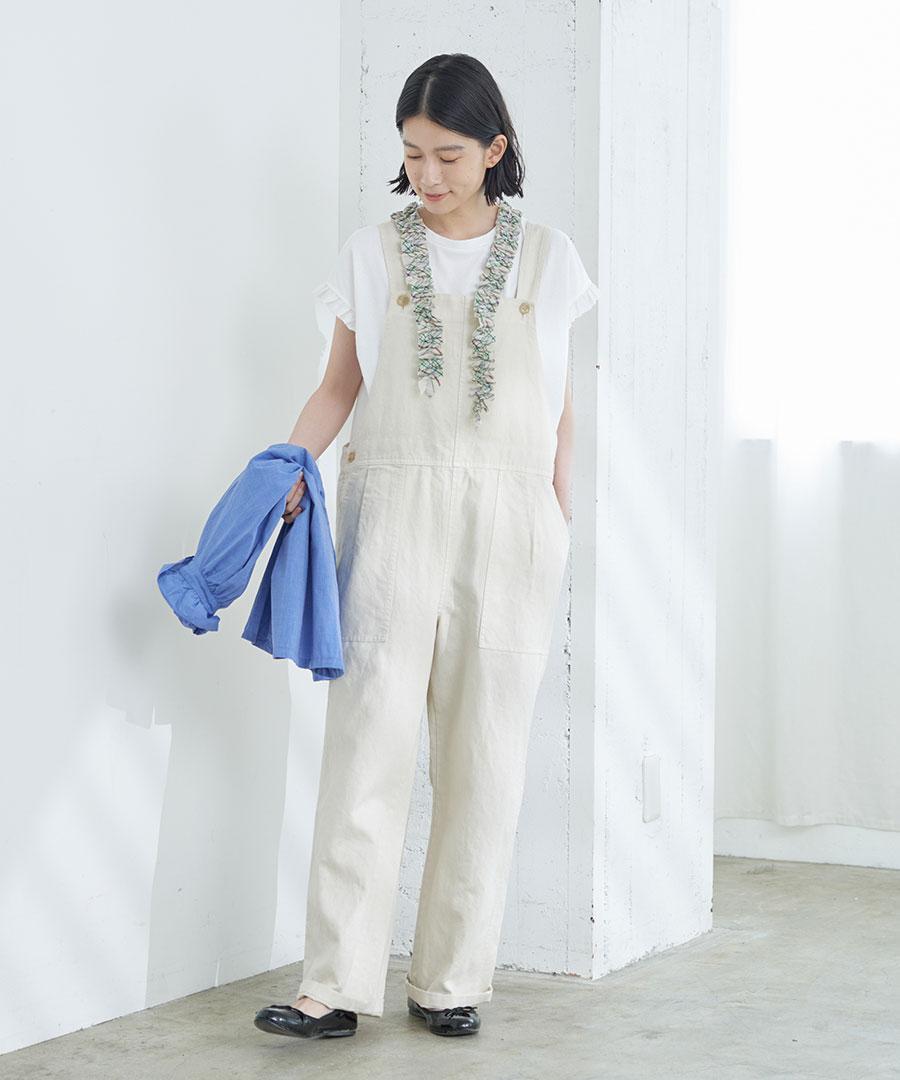 さらっとした肌触りと柔らかくしなやかな素材で、大人気のコットンリネンデニムで仕立てたオーバーオールです。