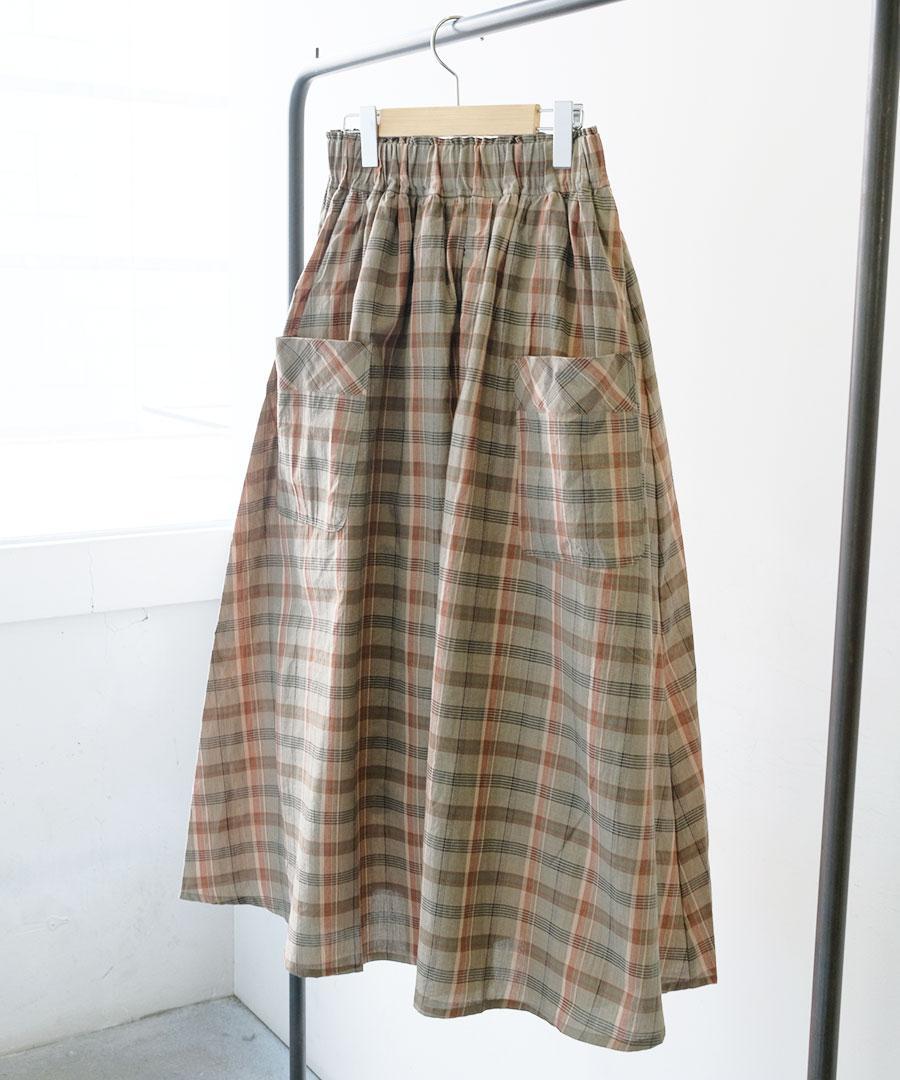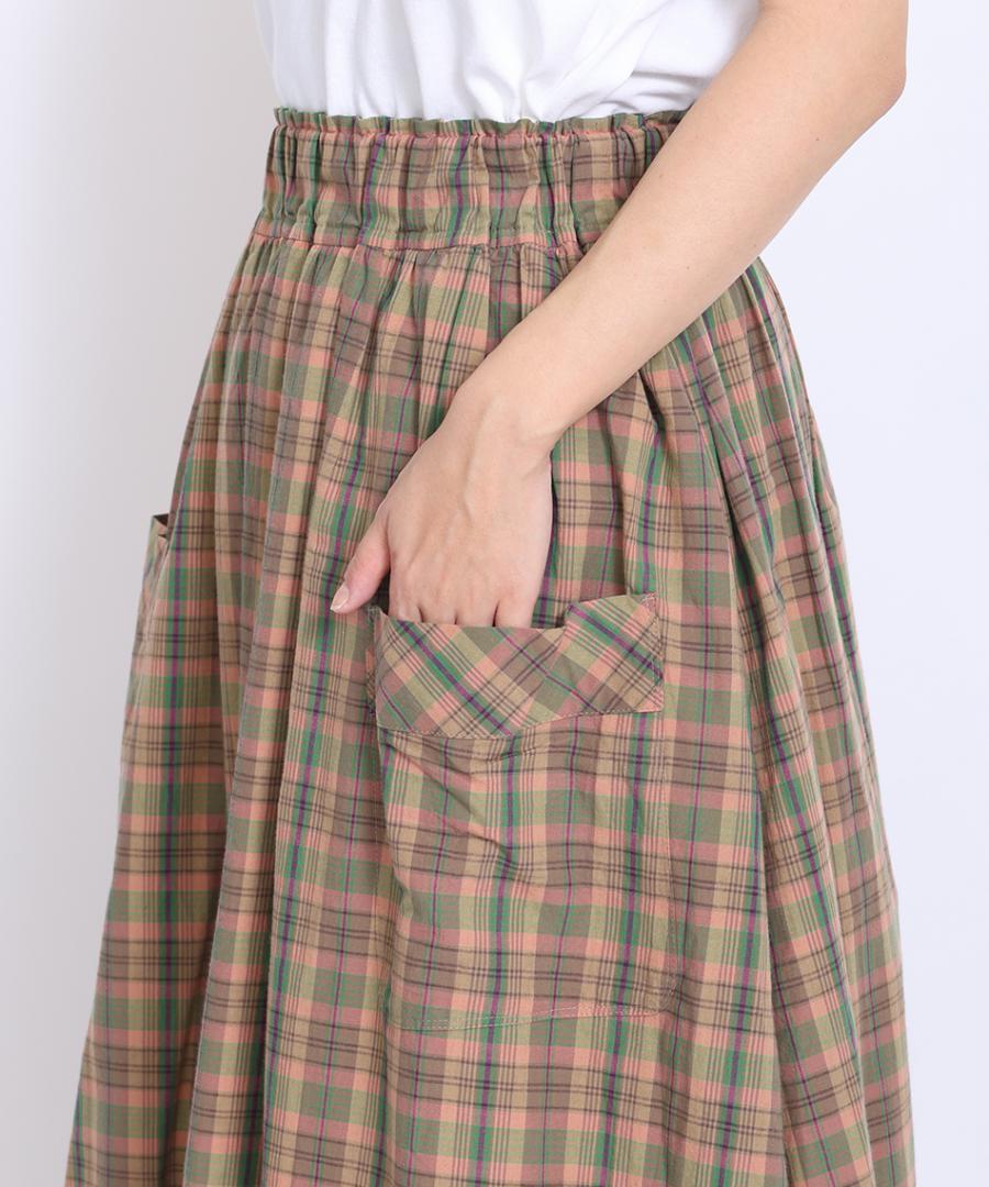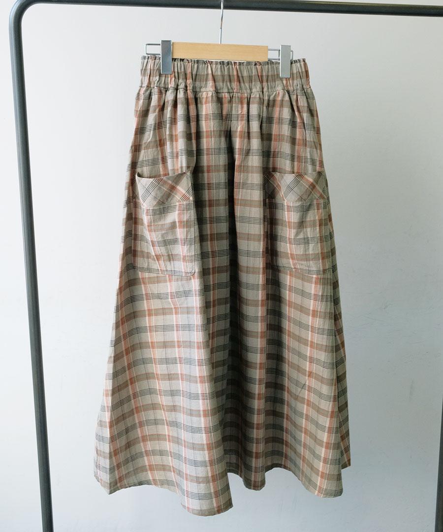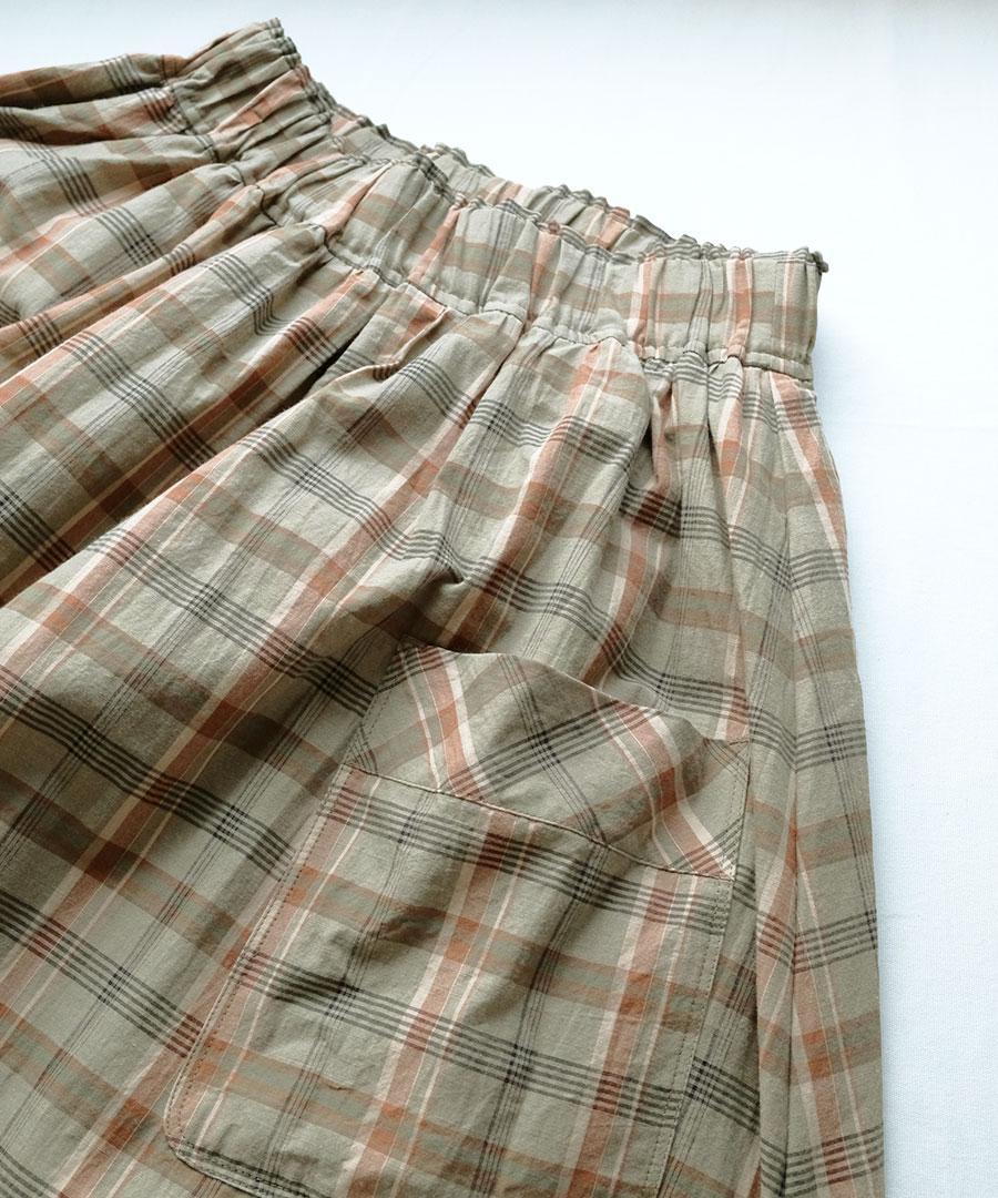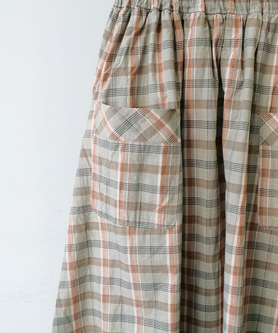 コットンマドラスチェック ポケットギャザースカート