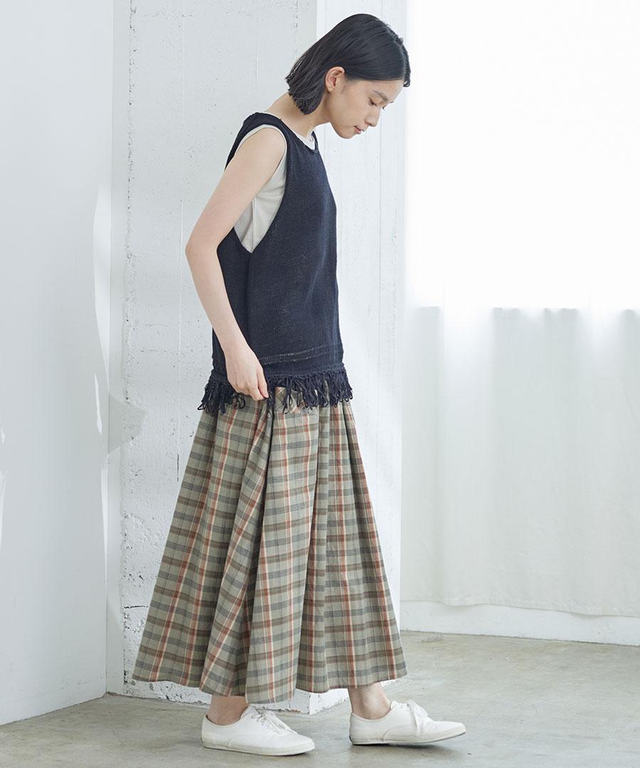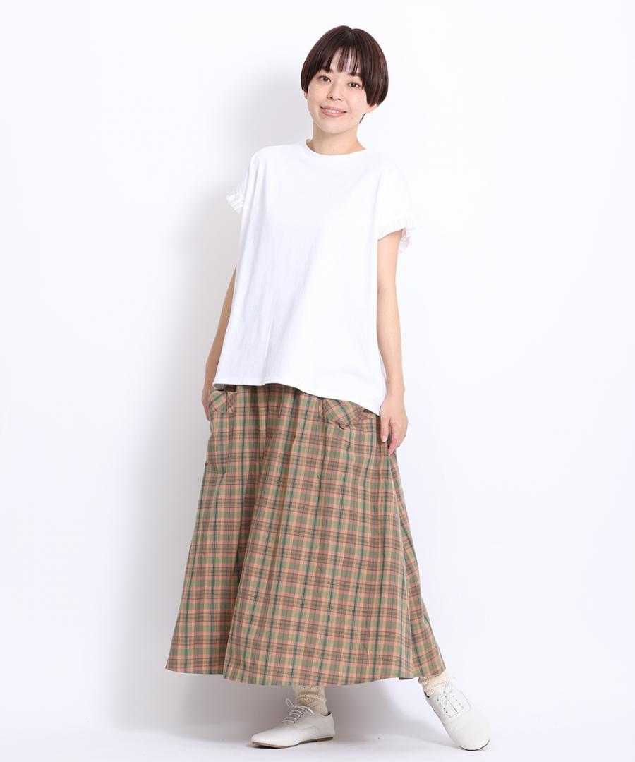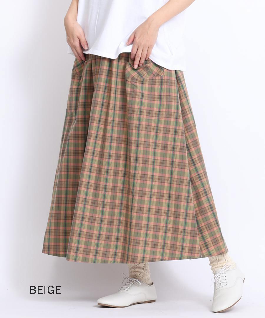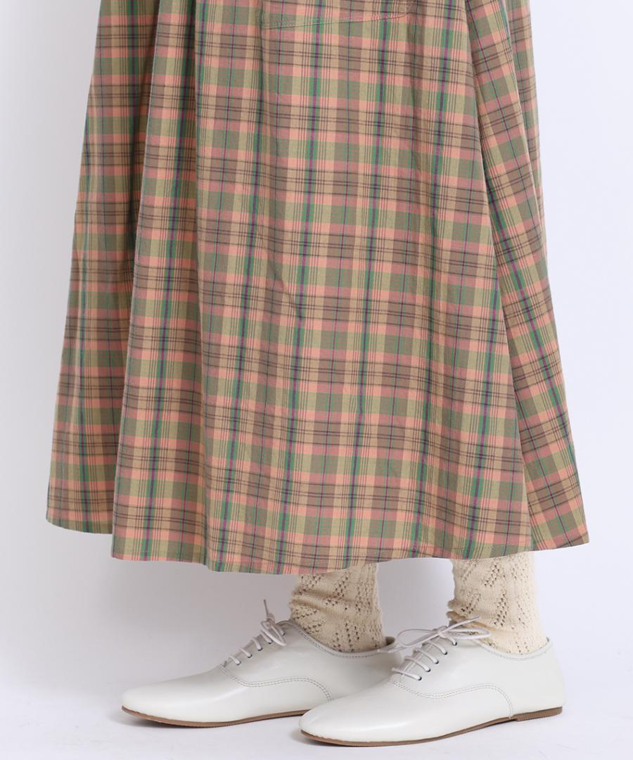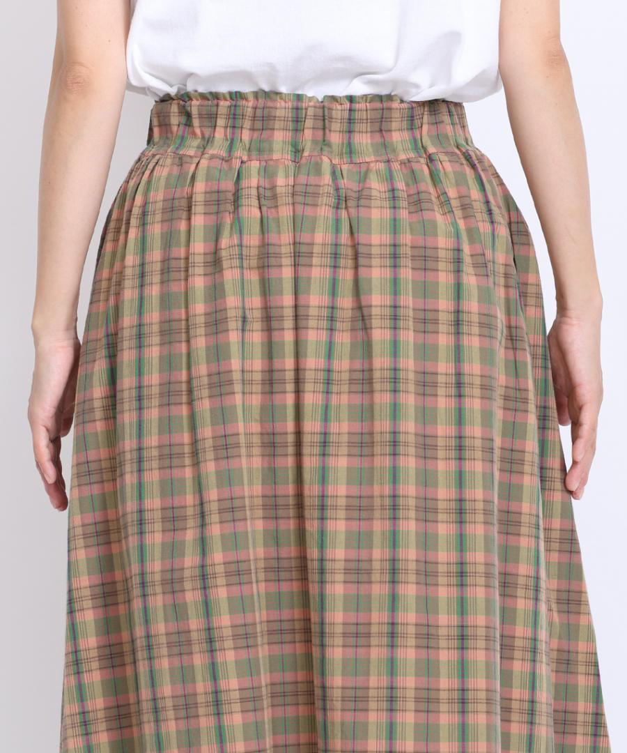コットンマドラスチェック ポケットギャザースカート