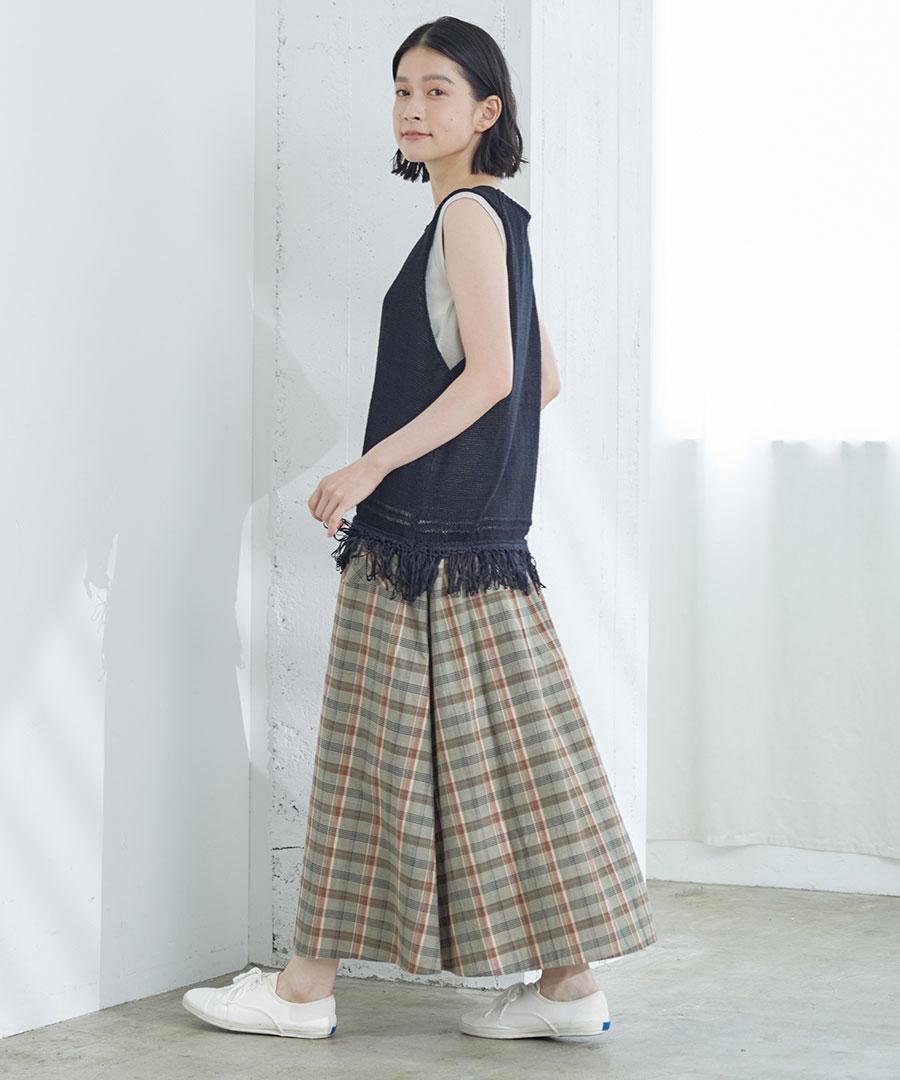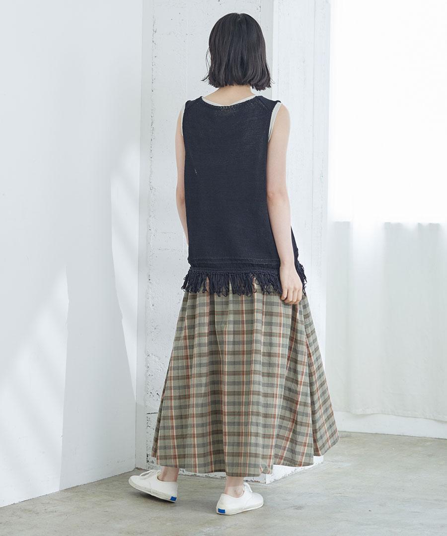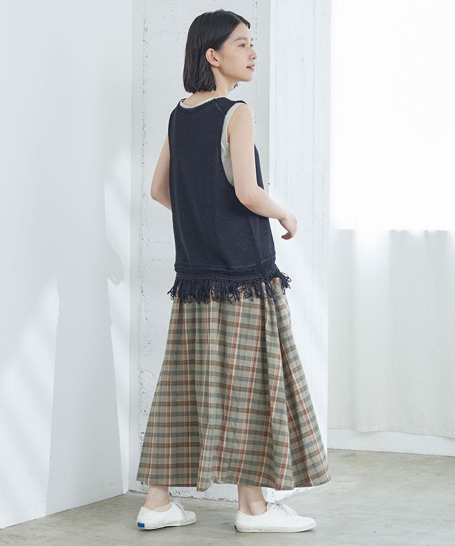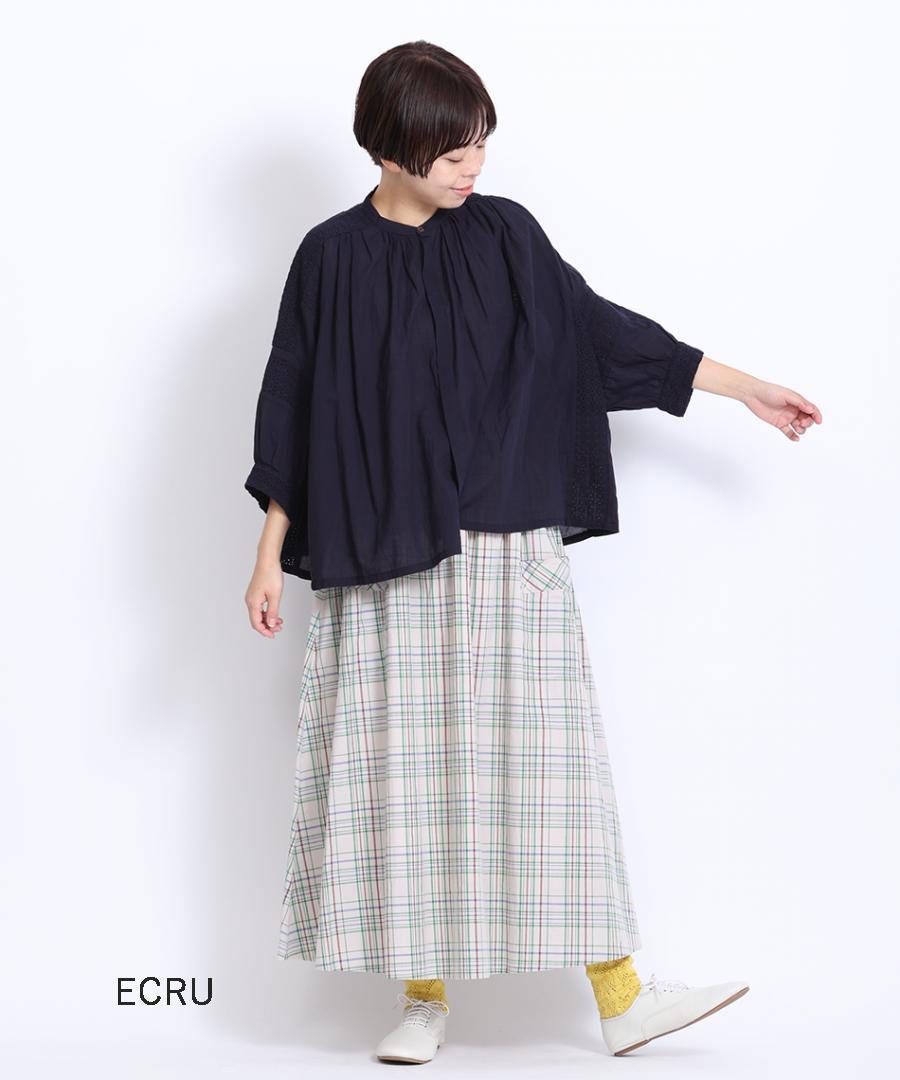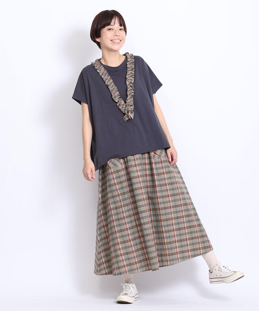 コットンマドラスチェック ポケットギャザースカート