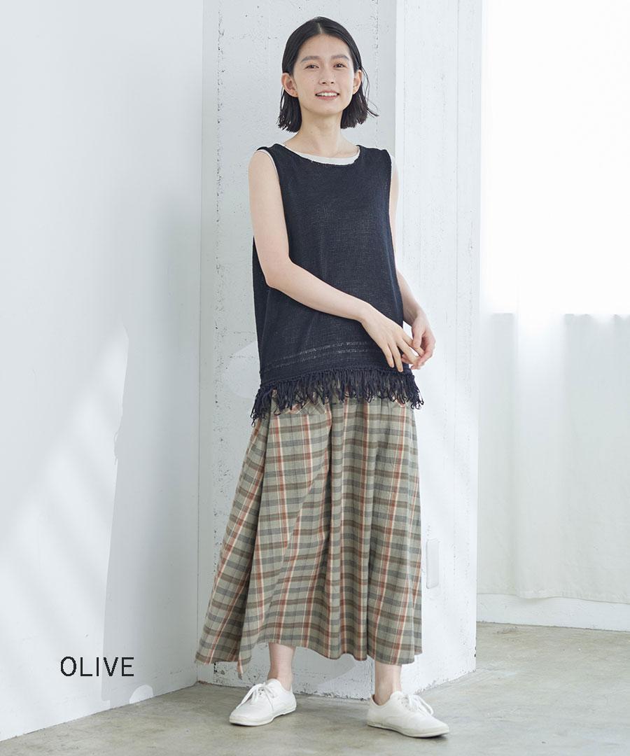 コットン素材のマドラスチェック生地のスカートです。