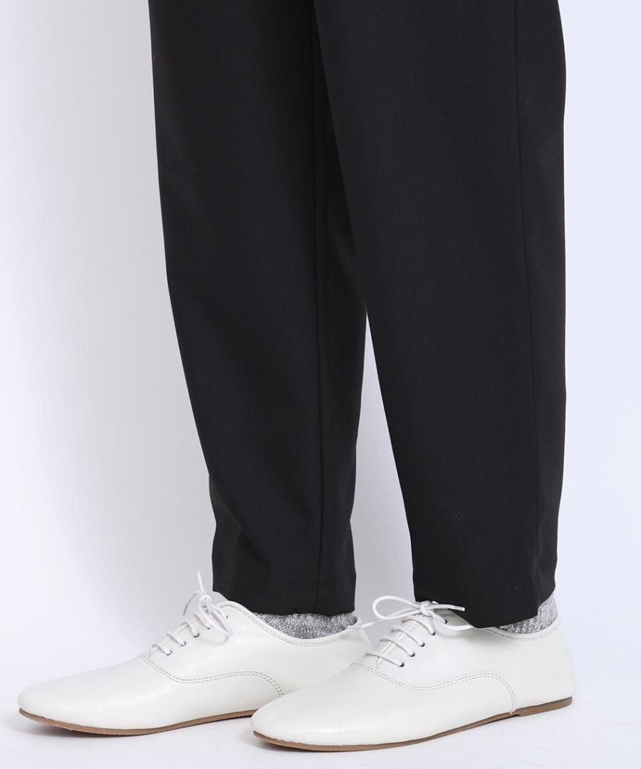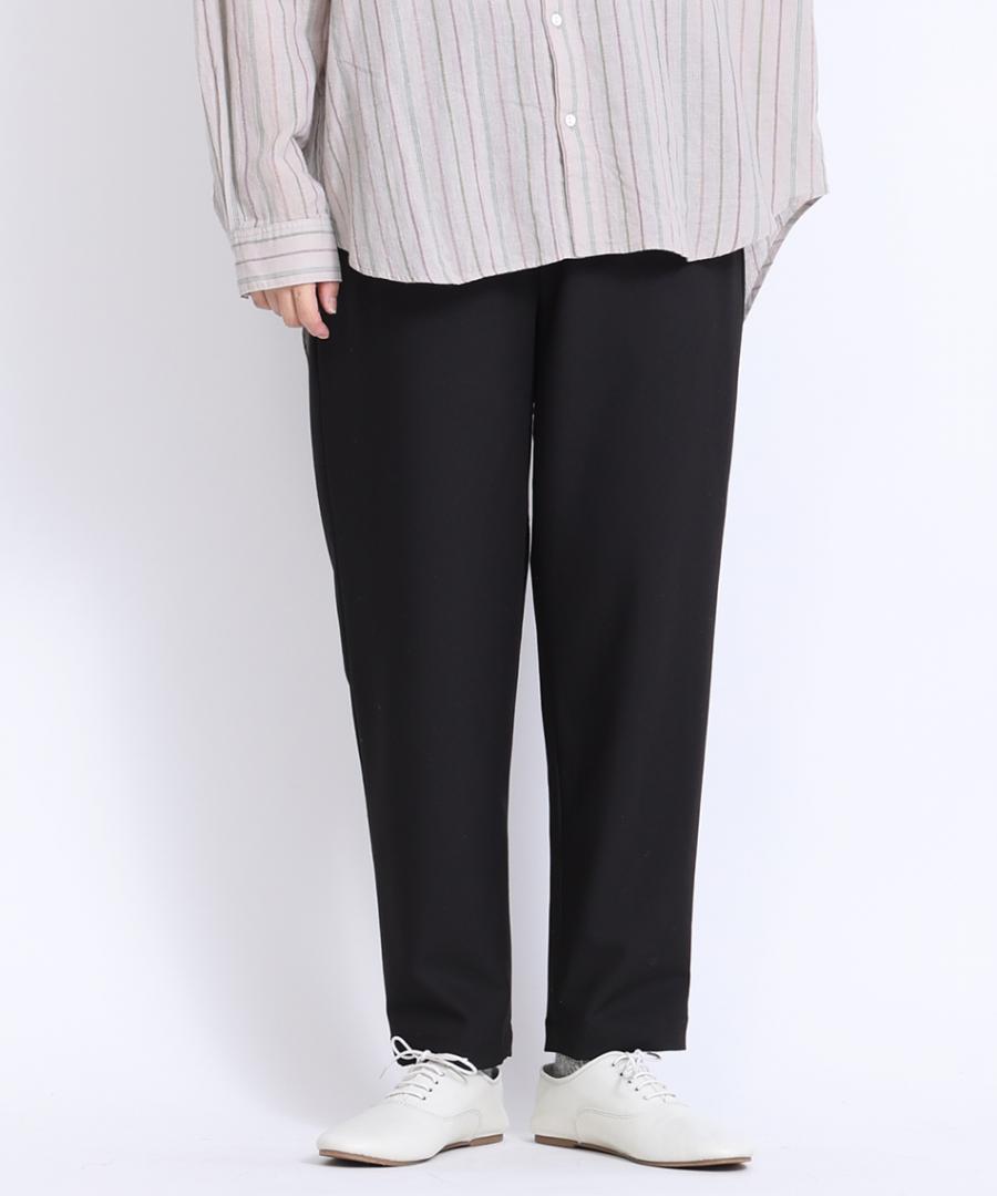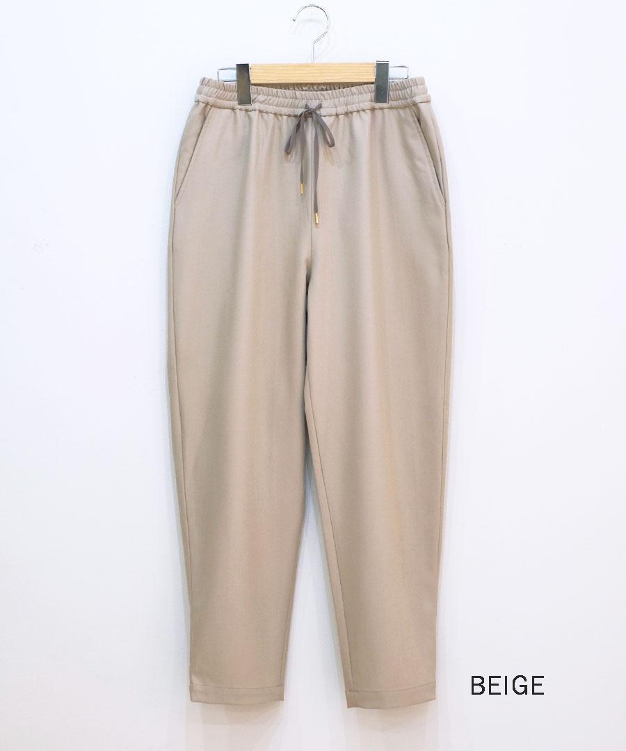 ほど良いハリの中に、ソフトな風合いとドレープ感を兼ね備えたツイル素材で仕立てたスリムテーパードパンツです。