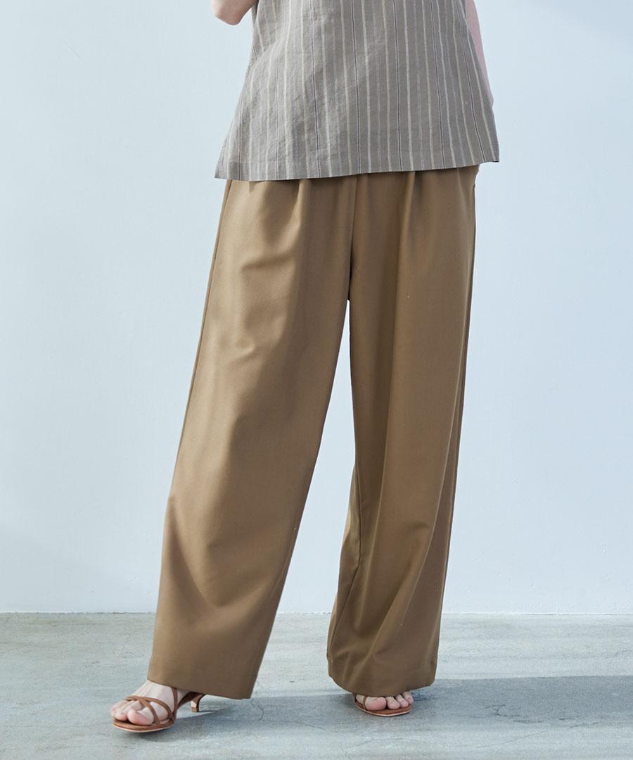 ほど良いハリの中に、ソフトな風合いとドレープ感を兼ね備えたツイル素材で仕立てたイージーワイドパンツです。