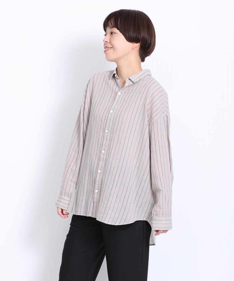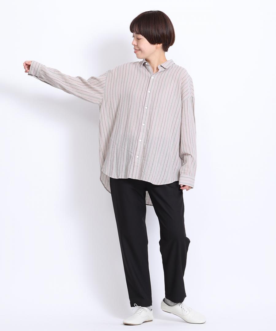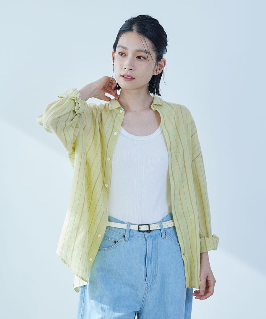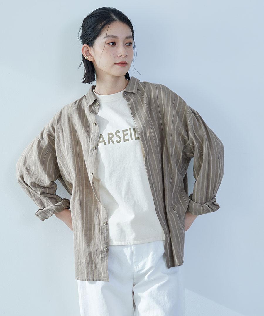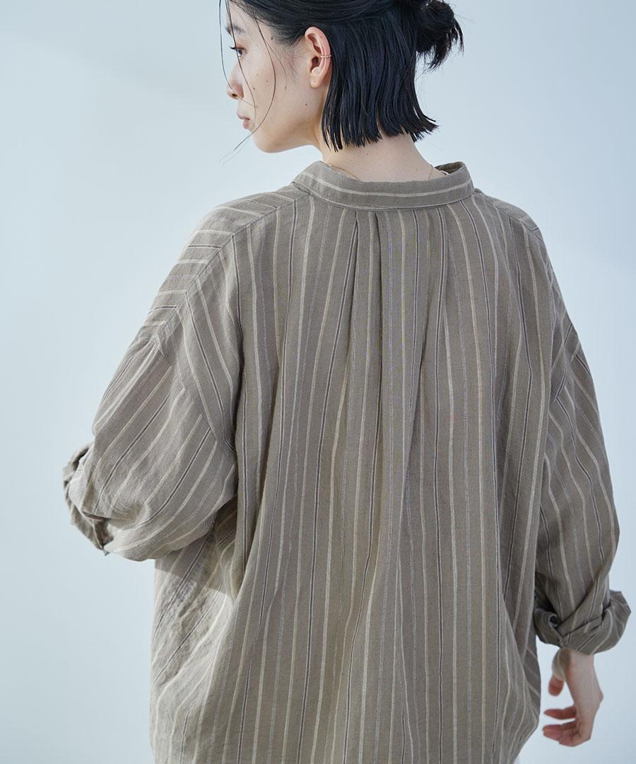 ふんわり感がありつつ、程よいシャリっと感と軽やかなコットンリネン素材で仕立てたストライプシャツです。