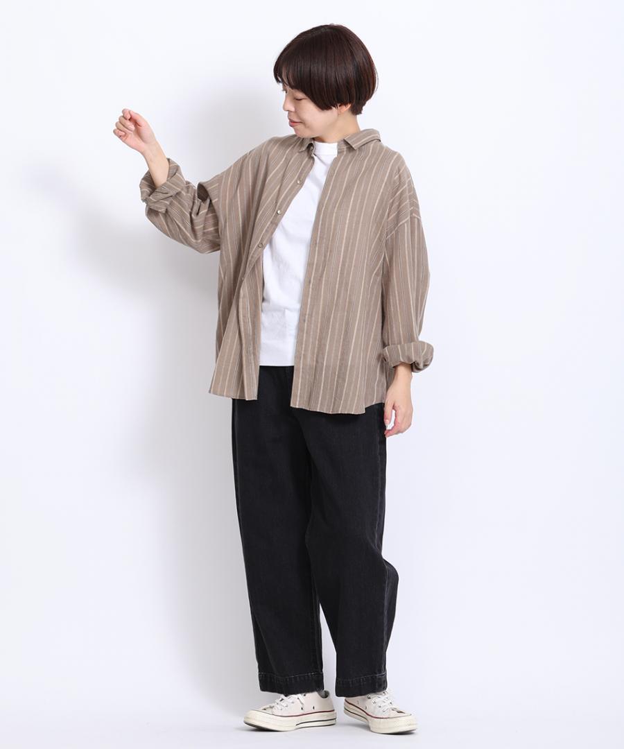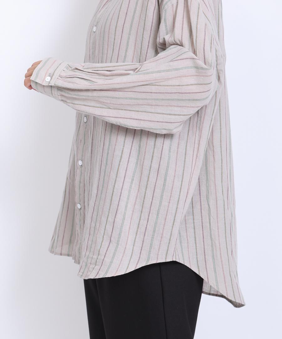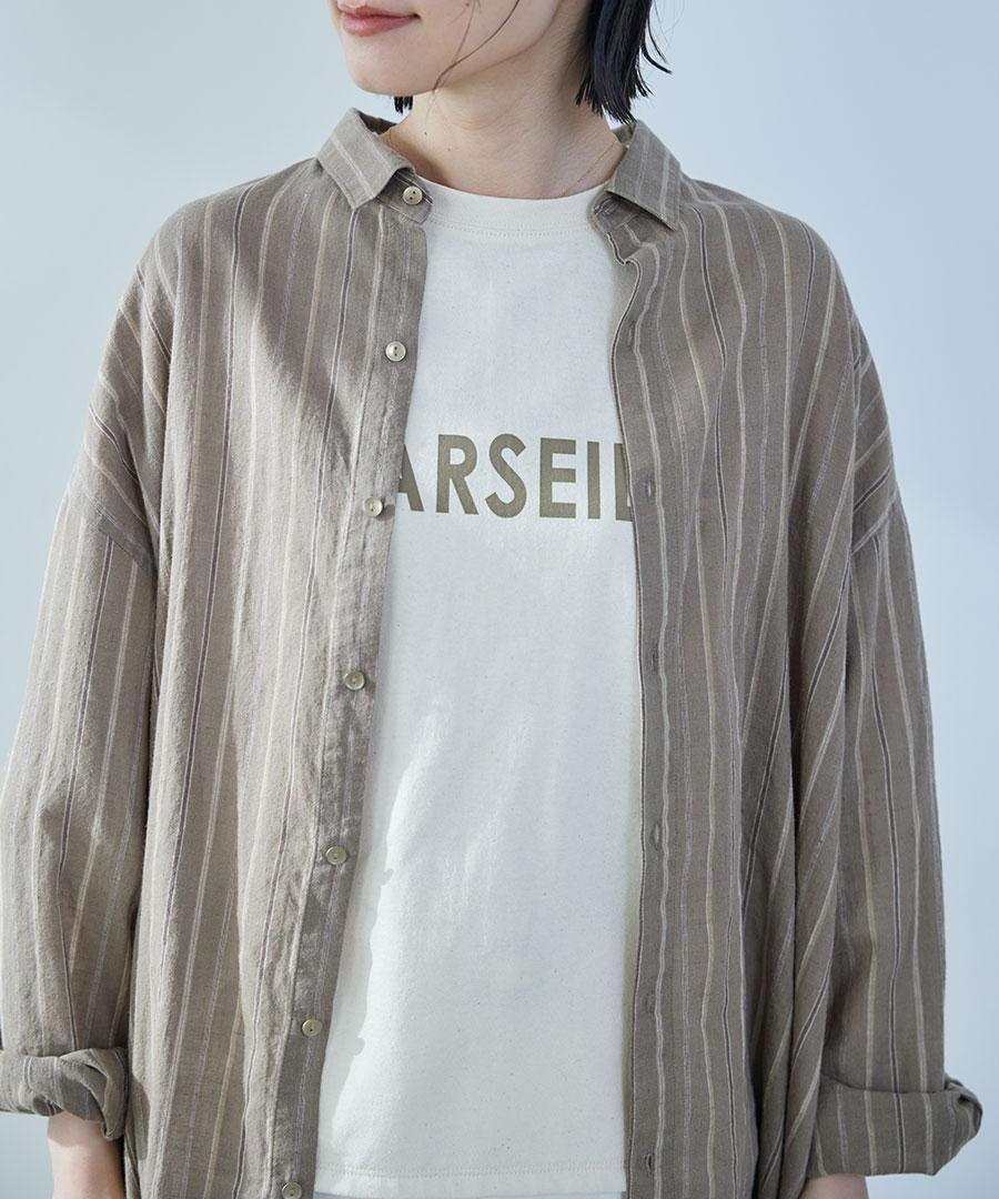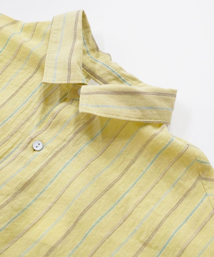 ふんわり感がありつつ、程よいシャリっと感と軽やかなコットンリネン素材で仕立てたストライプシャツです。