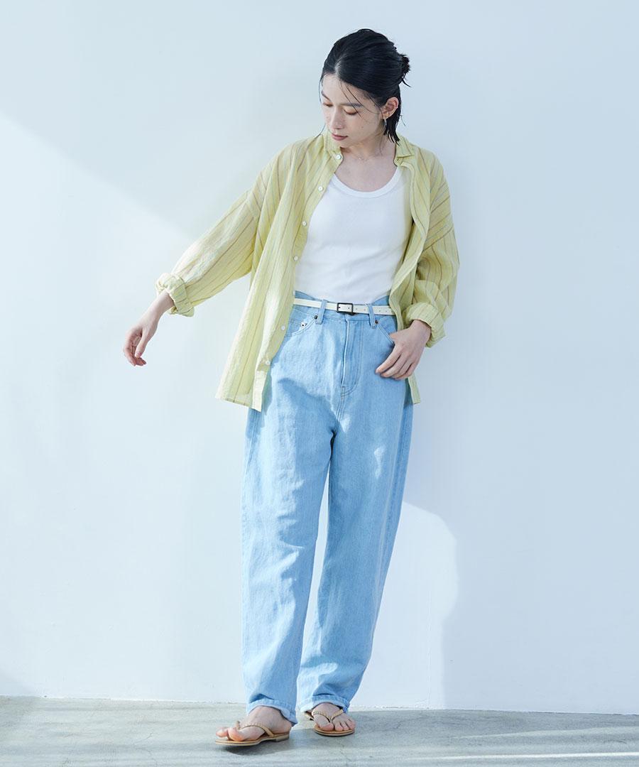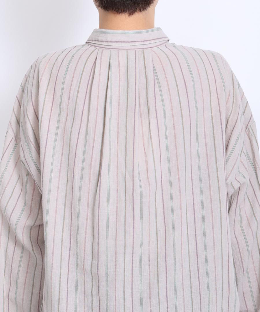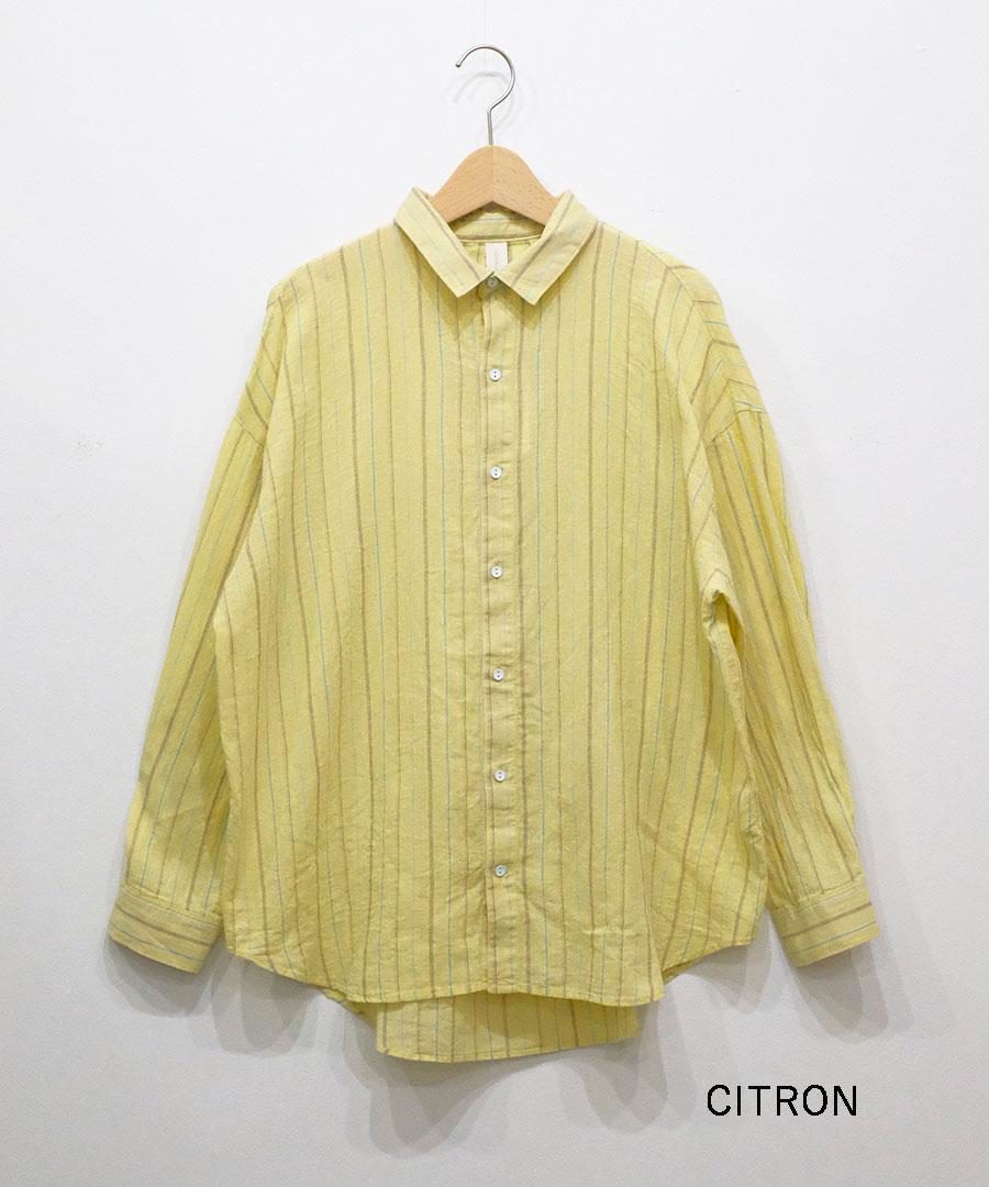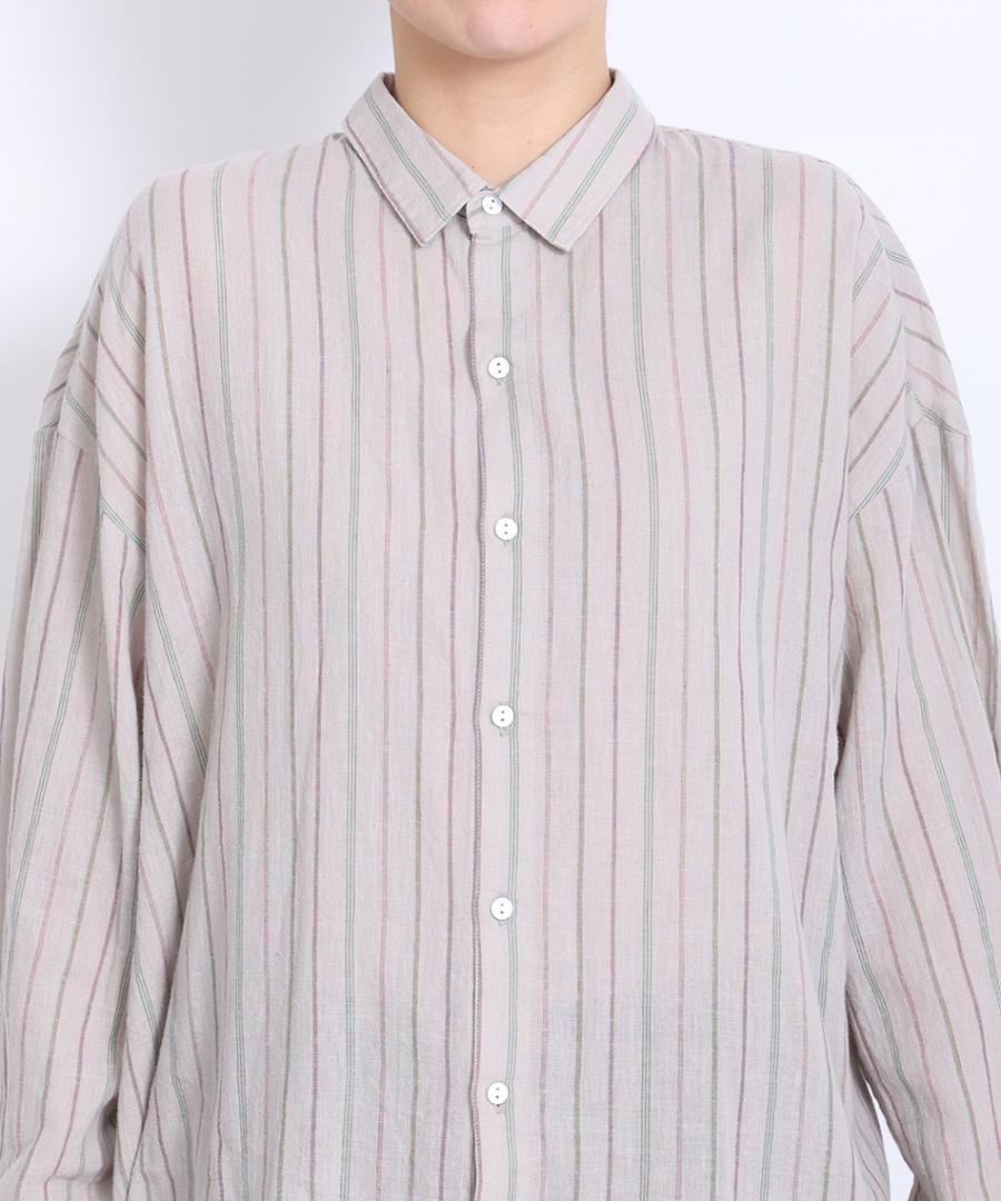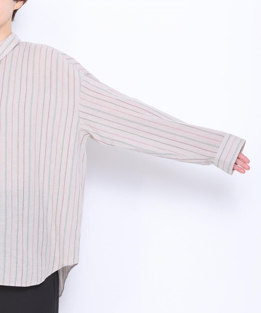 ふんわり感がありつつ、程よいシャリっと感と軽やかなコットンリネン素材で仕立てたストライプシャツです。
