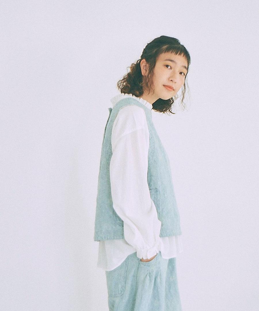 ベストを重ねた際にもちらりと見えるフリルがアクセントに◎