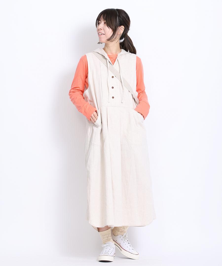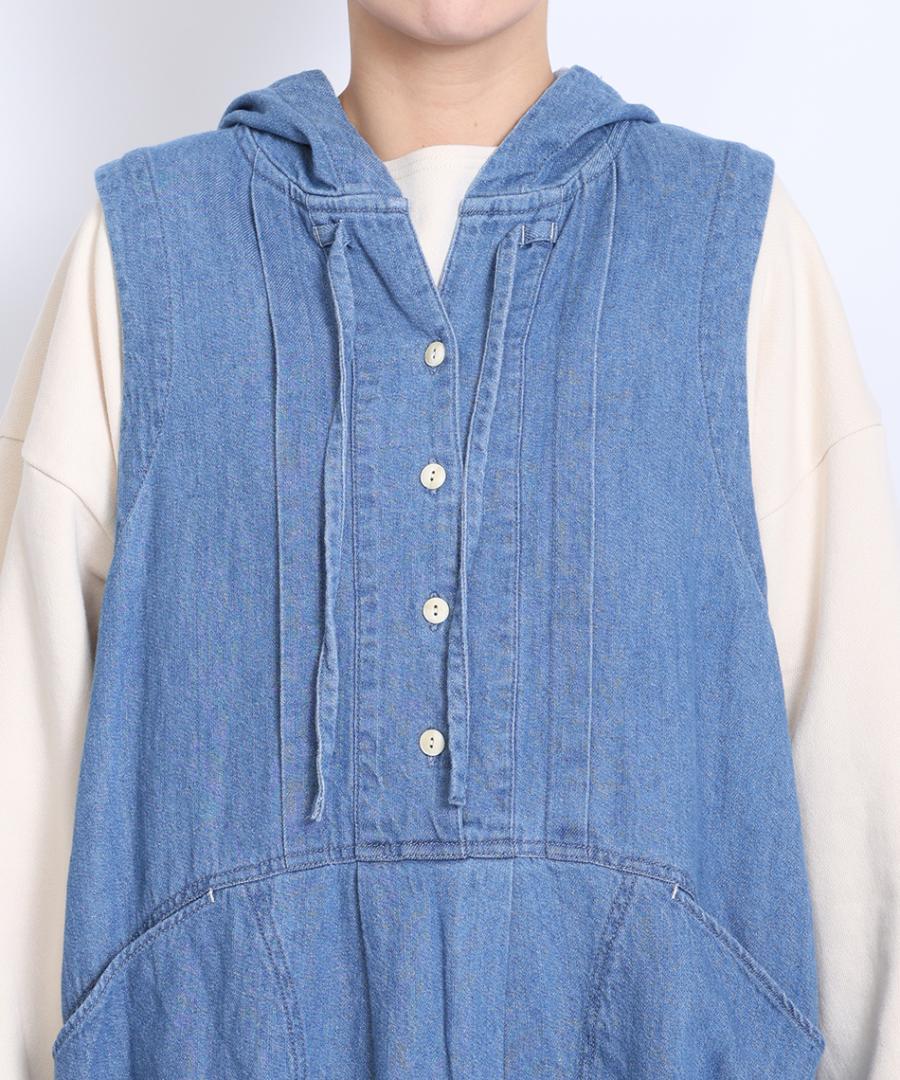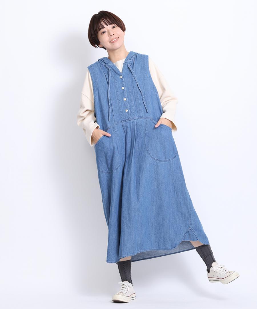 6.5ozコットンリネンデニム フードジャンパースカート