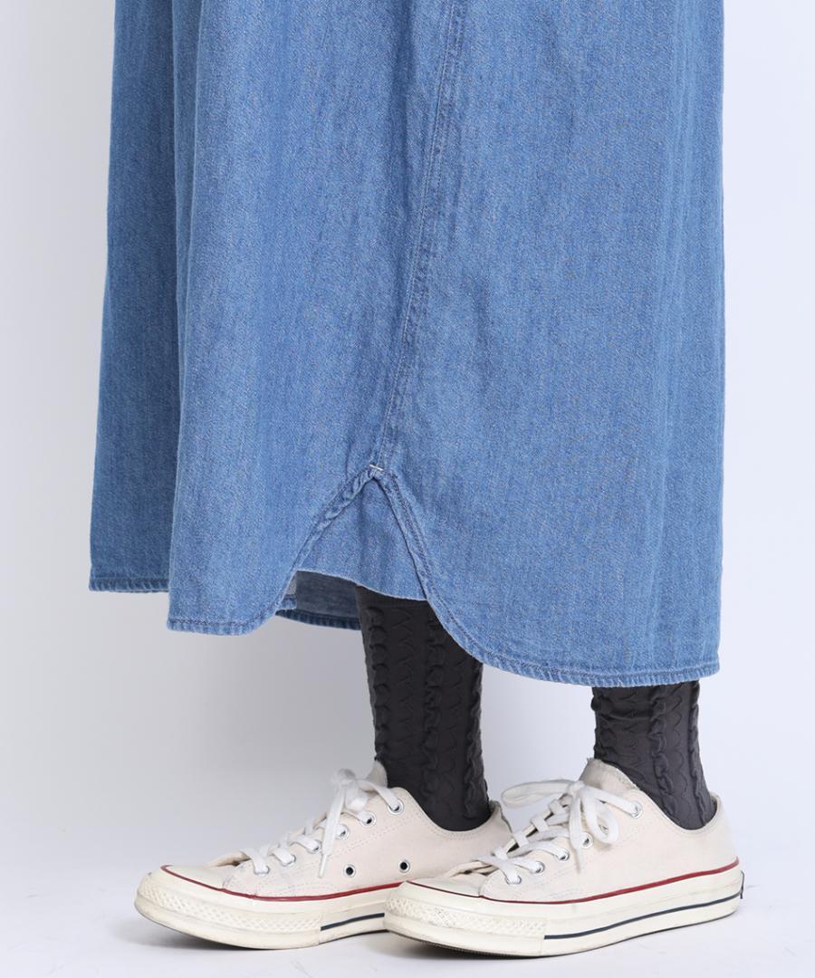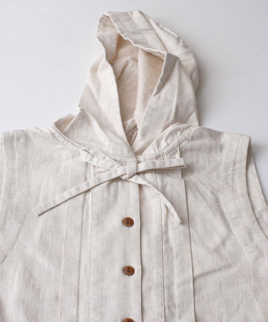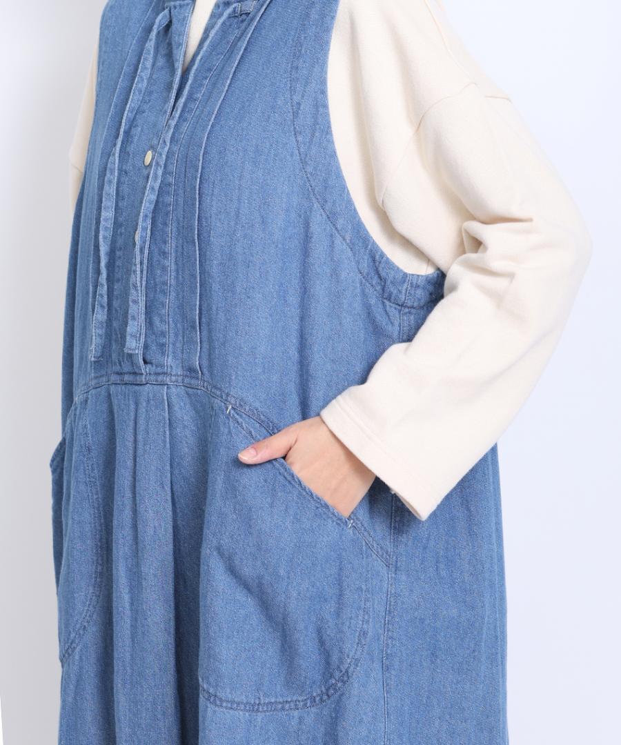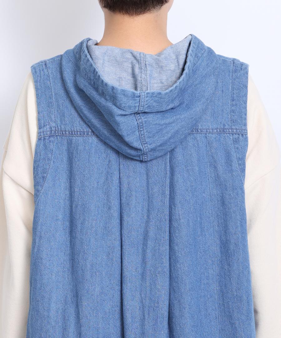 6.5ozコットンリネンデニム フードジャンパースカート