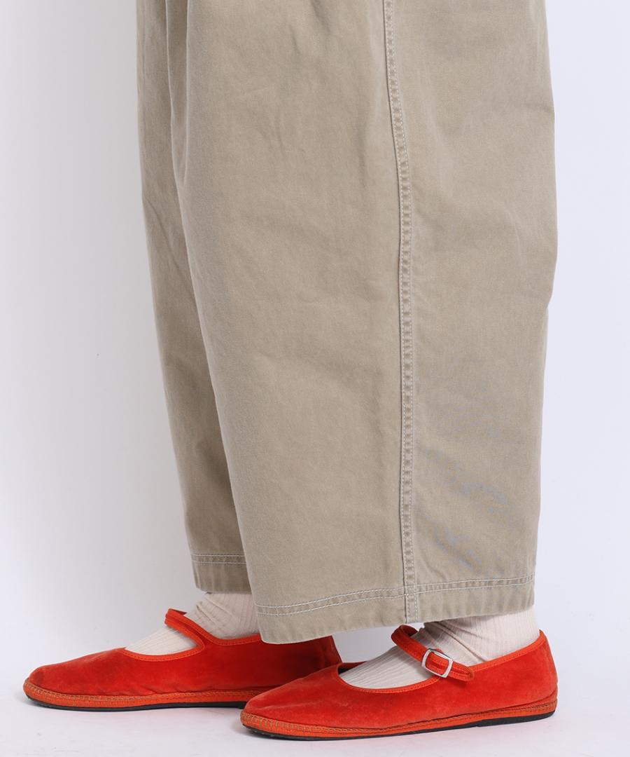 フランス軍のチノパンをルーツとし、粗野な糸でざっくり織ったヴィンテージ感漂うフル丈パンツ。