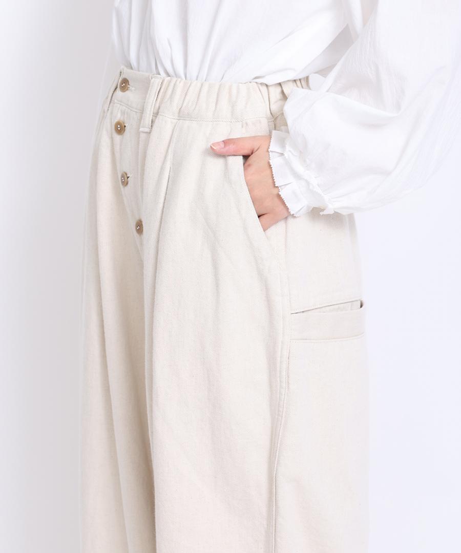 9.5ozコットンリネンデニム ワイドテーパードパンツ