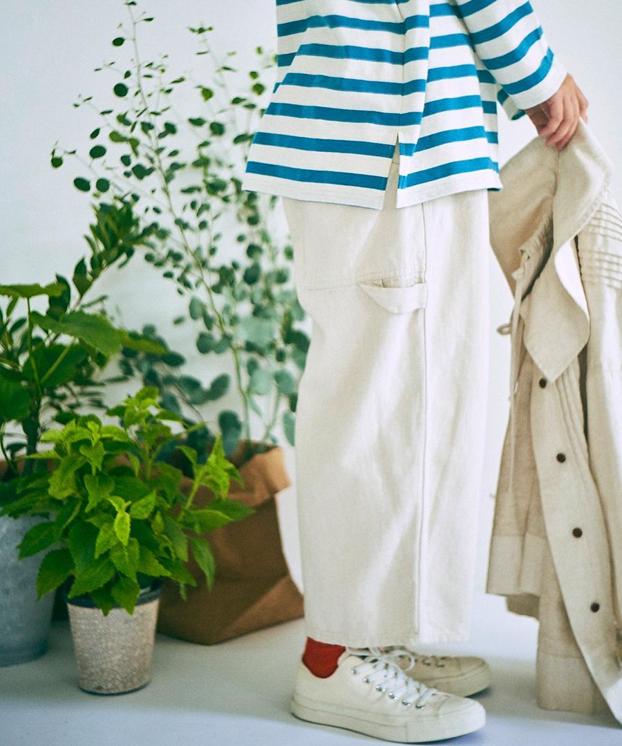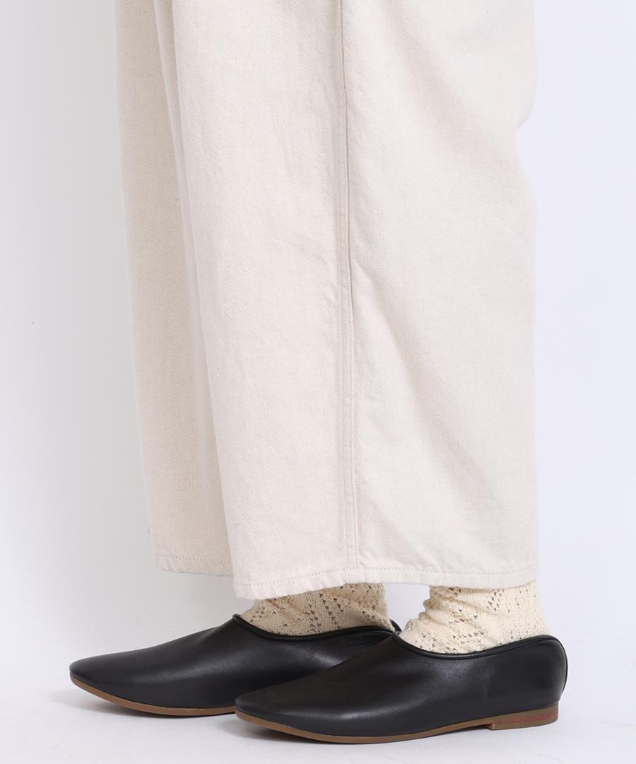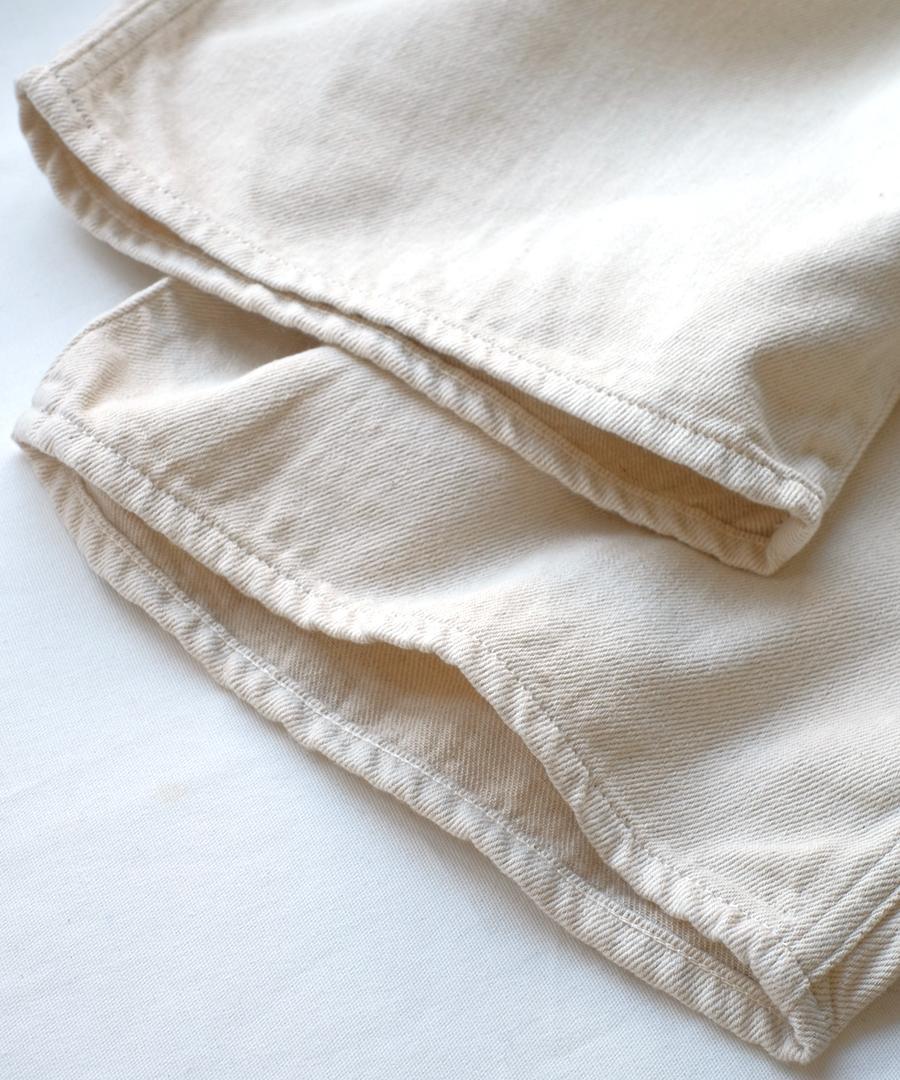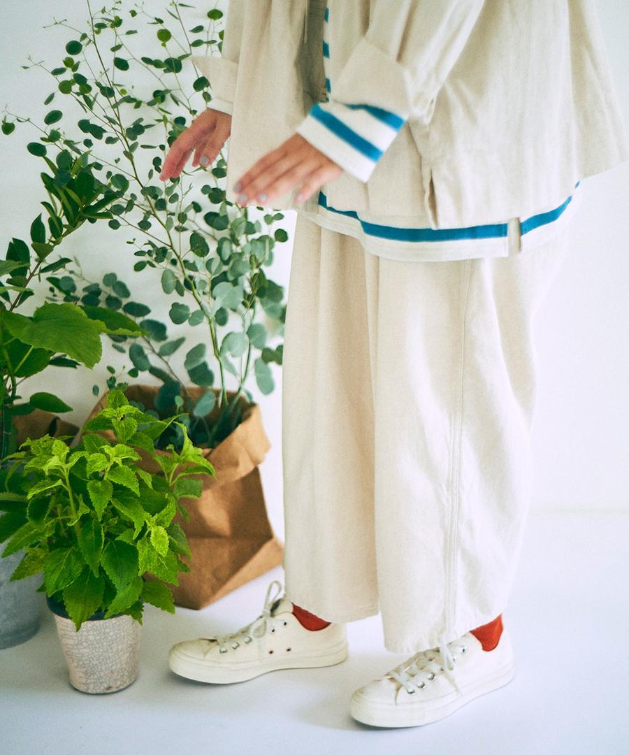 9.5ozのコットンリネンデニムで仕立てたワイドテーパードパンツ。
