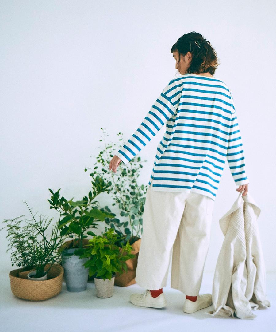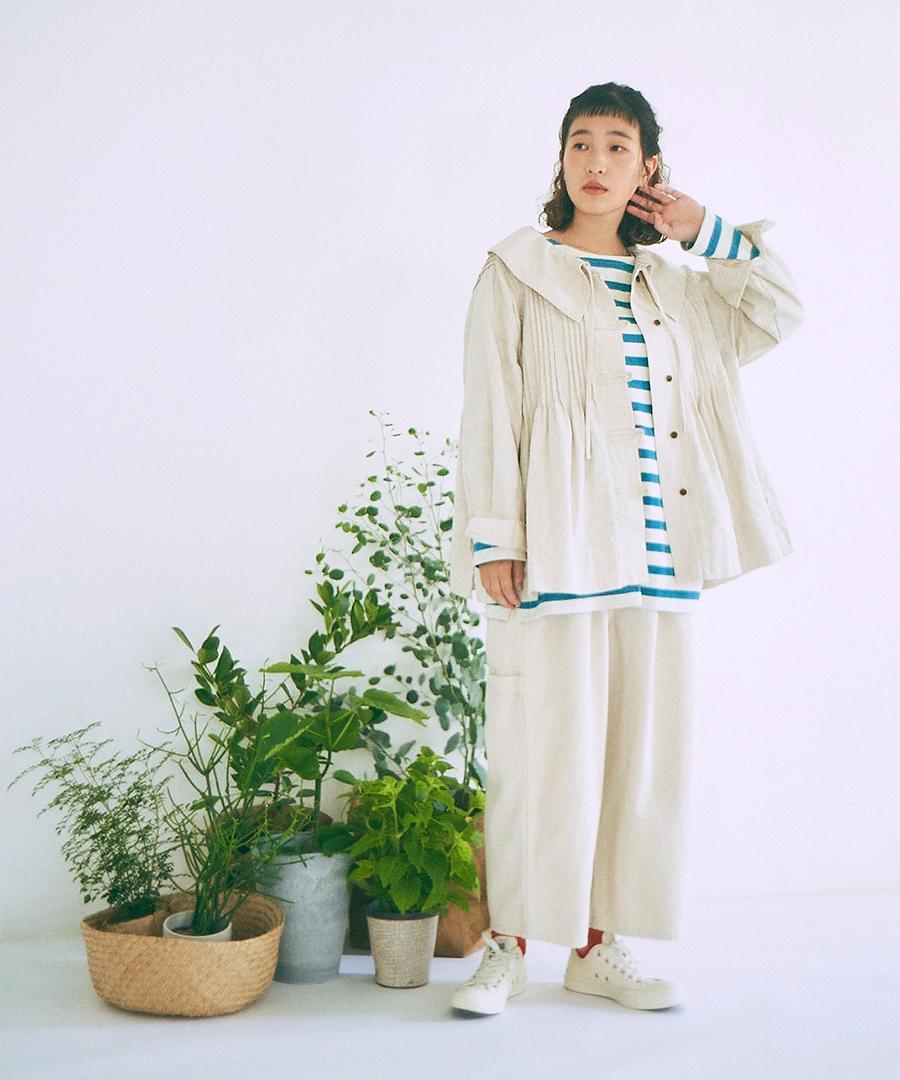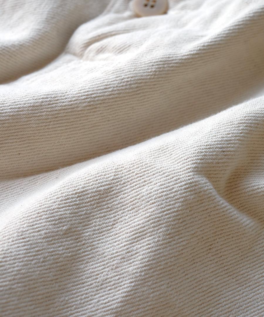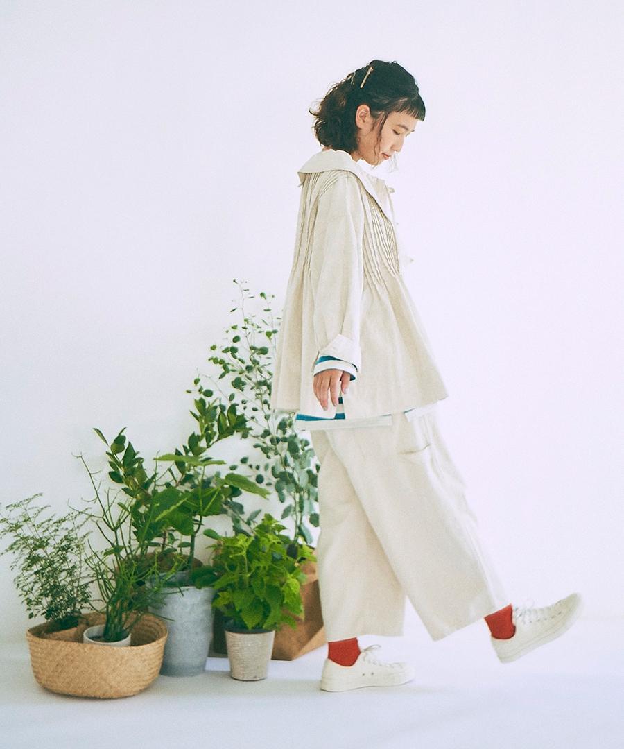 麻混で清涼感のある風合いをプラス。着用を繰りしていくうちにさらに柔らかく馴染んでいきます。