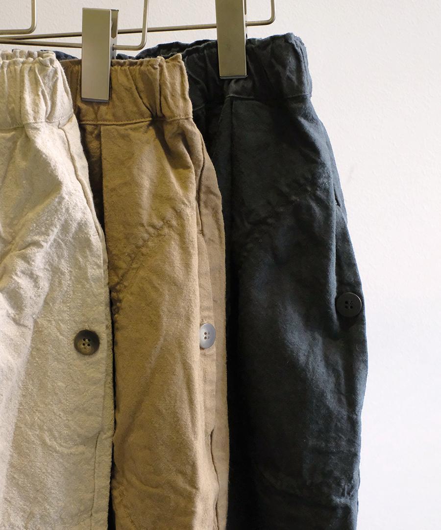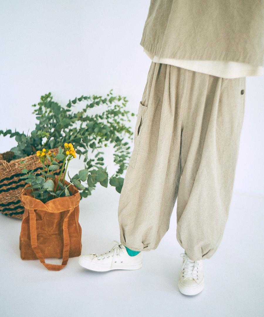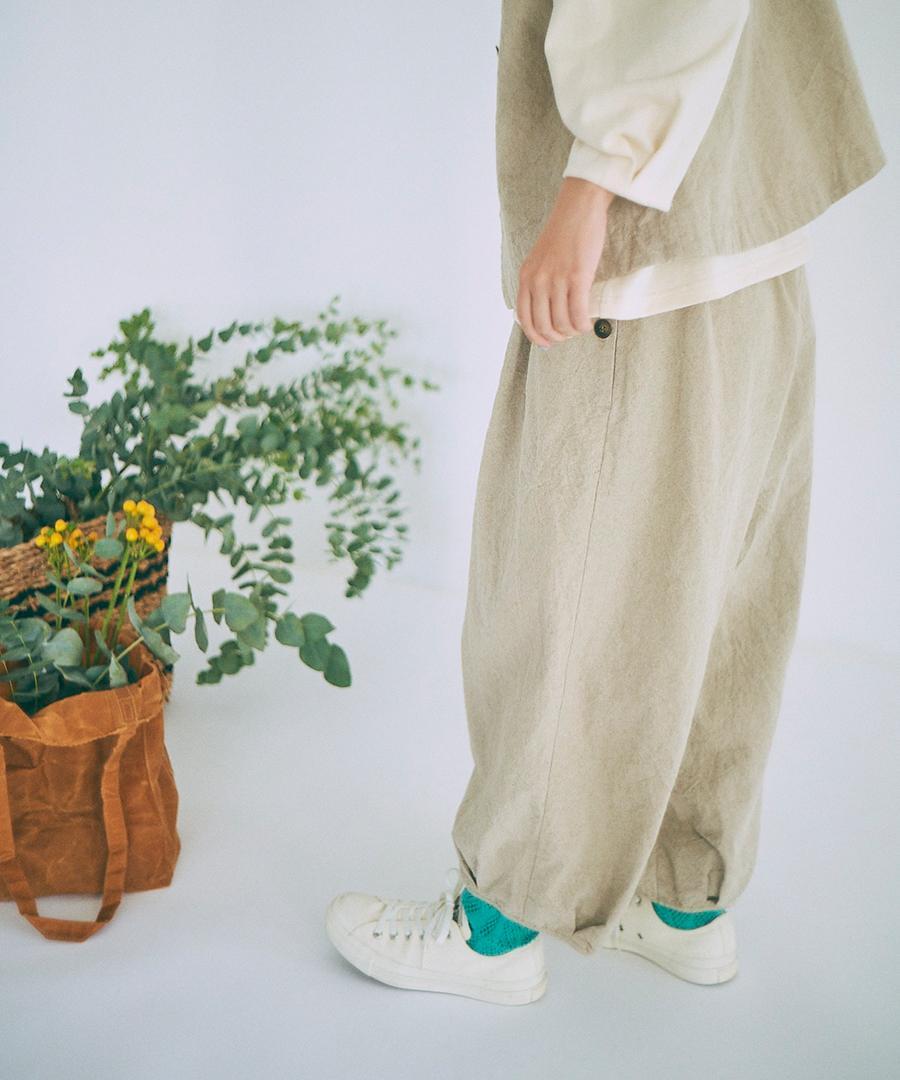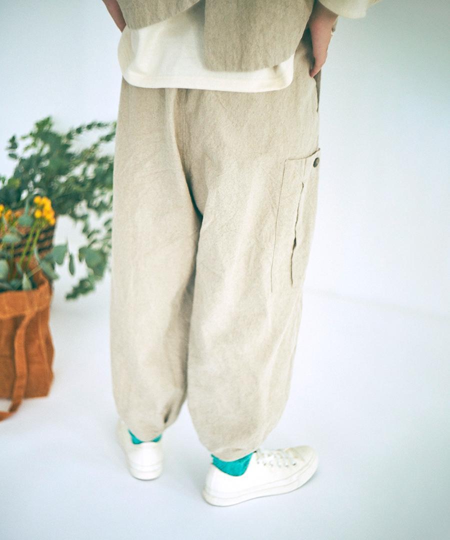 シワ感とくったりとした風合いのリネンコットン素材で仕立てたパンツです。