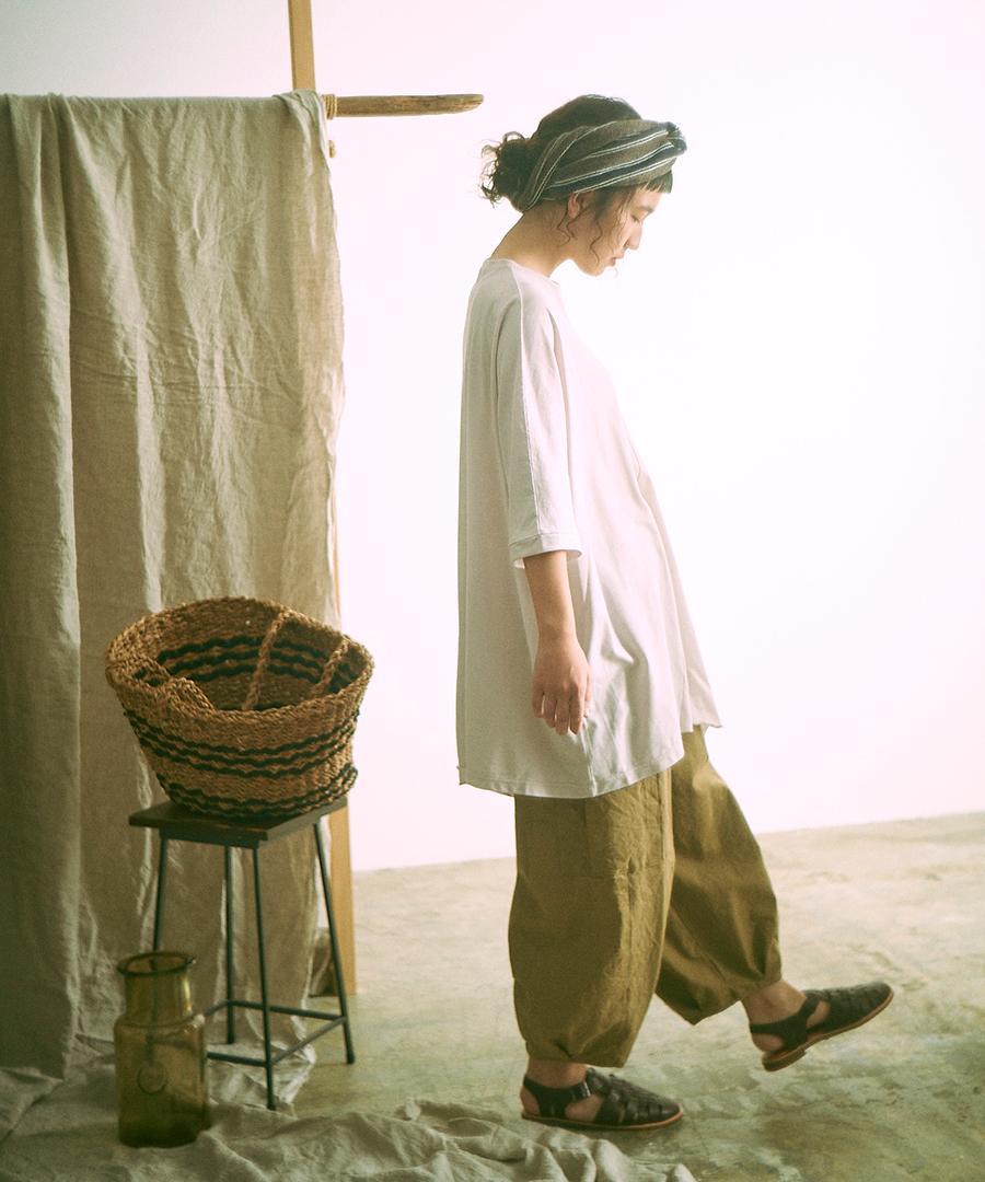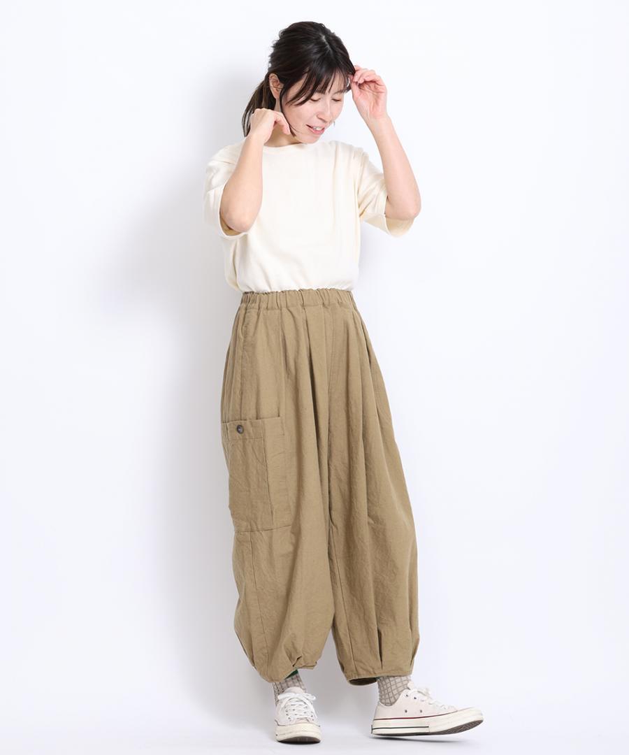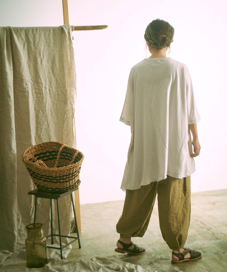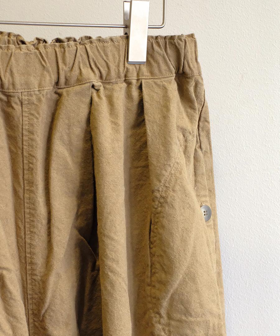 シワ感とくったりとした風合いのリネンコットン素材で仕立てたパンツです。