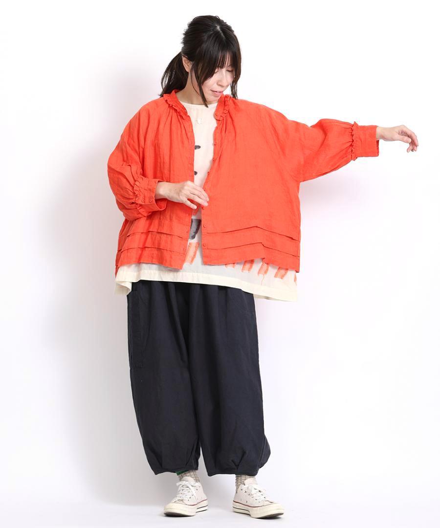 裾にはタックを入れ、ぽわんと丸みのあるボリュームシルエットになっています。
