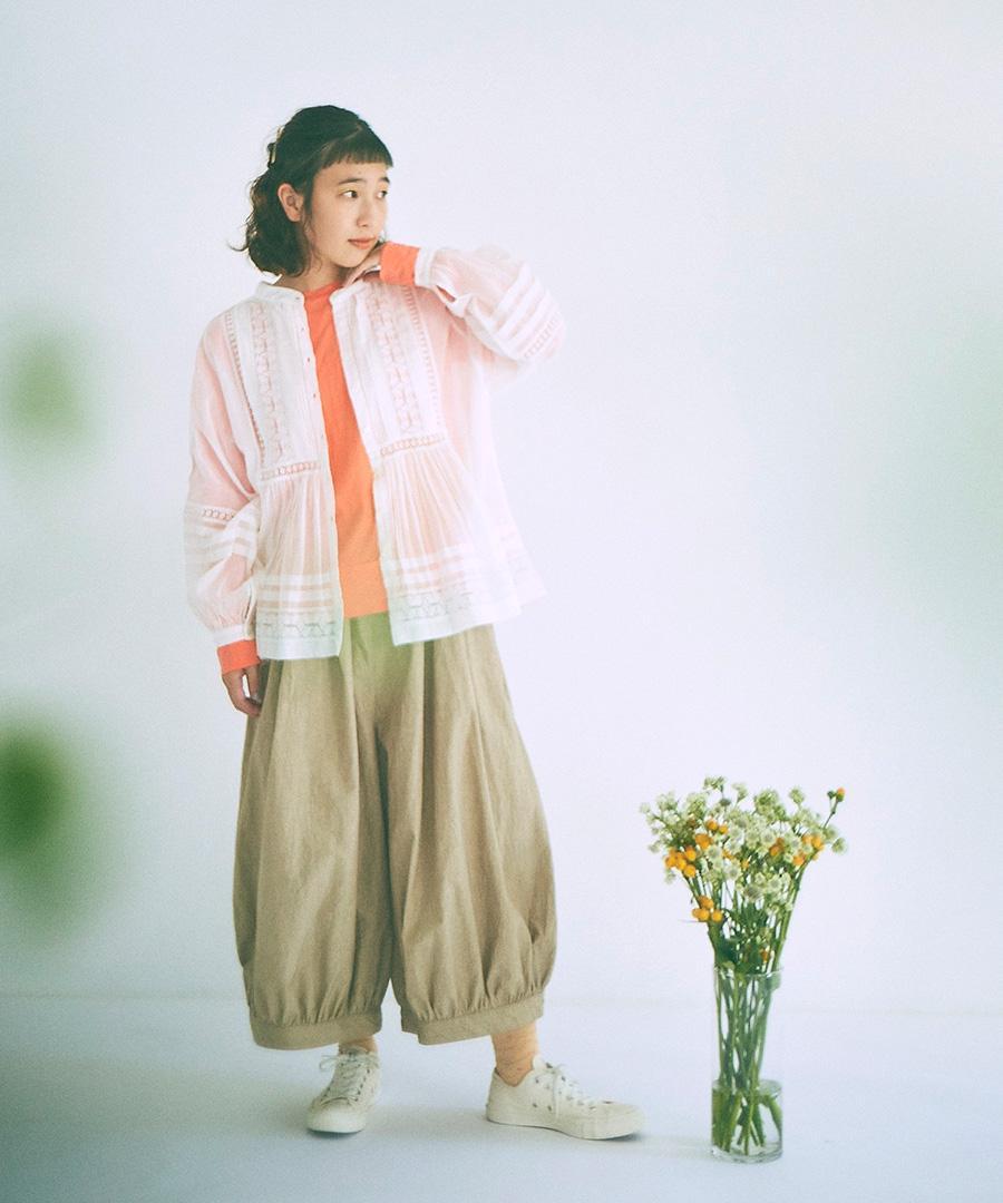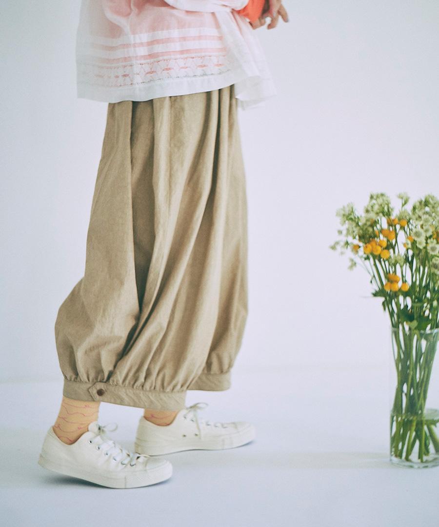 コットンリネンタイプライターファナージュ ボリュームパンツ