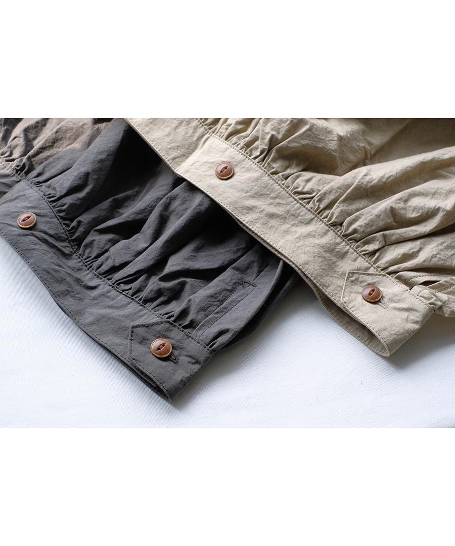 裾は釦で2段階調整ができ、シルエットに変化をつけられますよ。