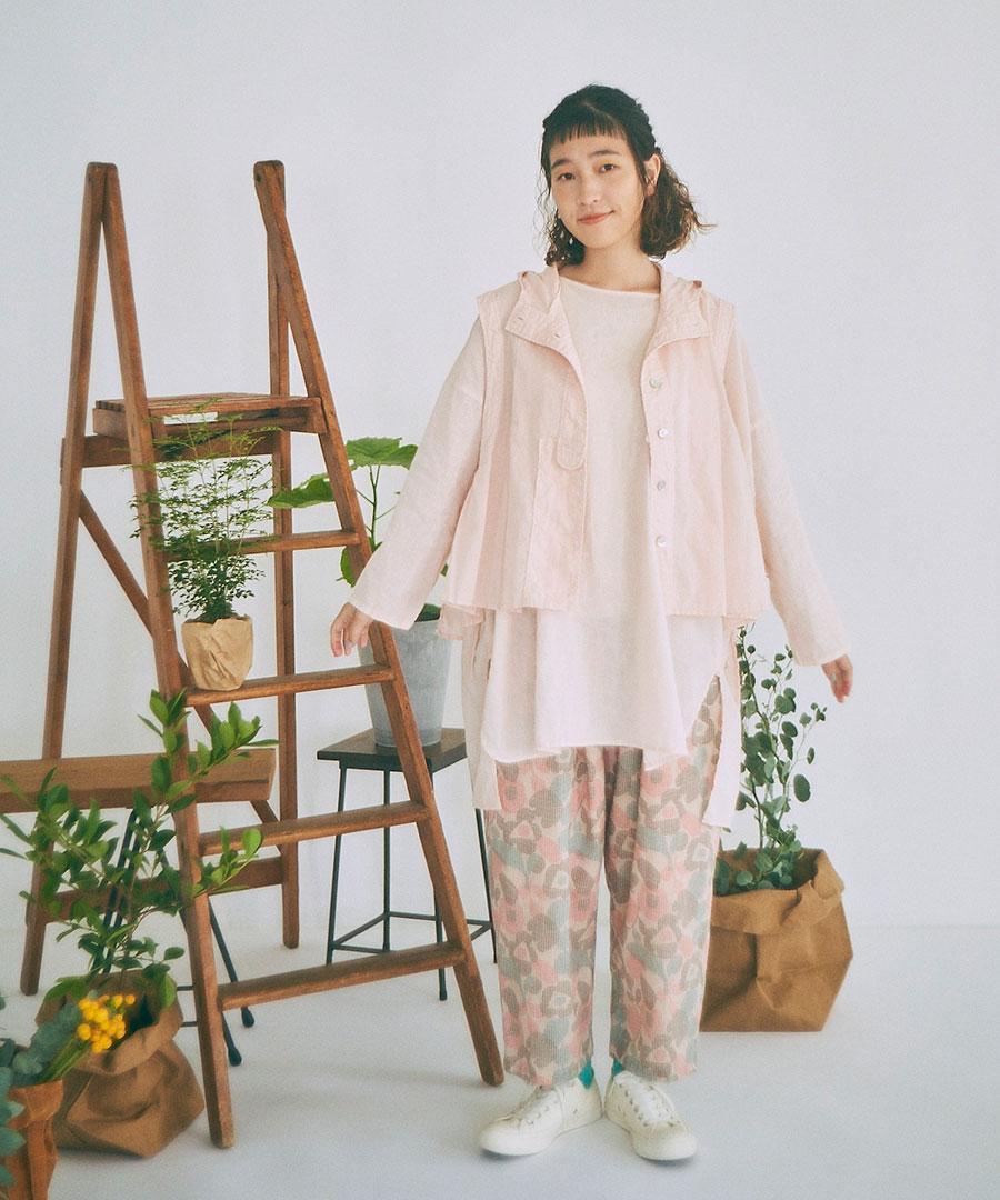 tumugu /太番手ステッチコットンリネンボイル フードベスト