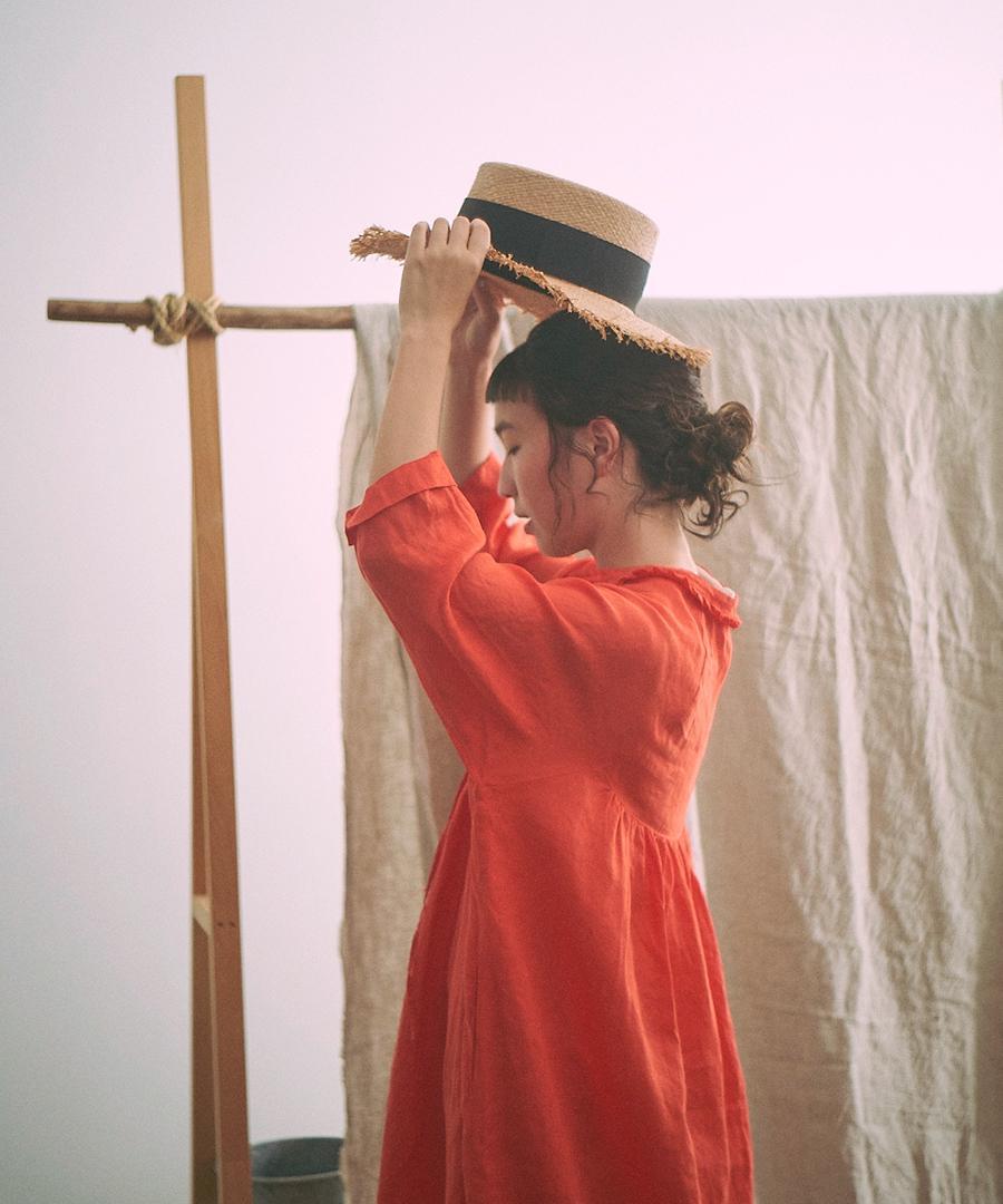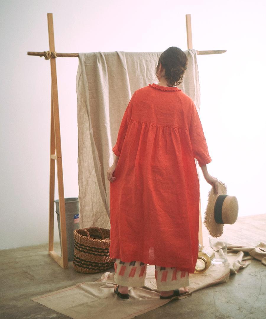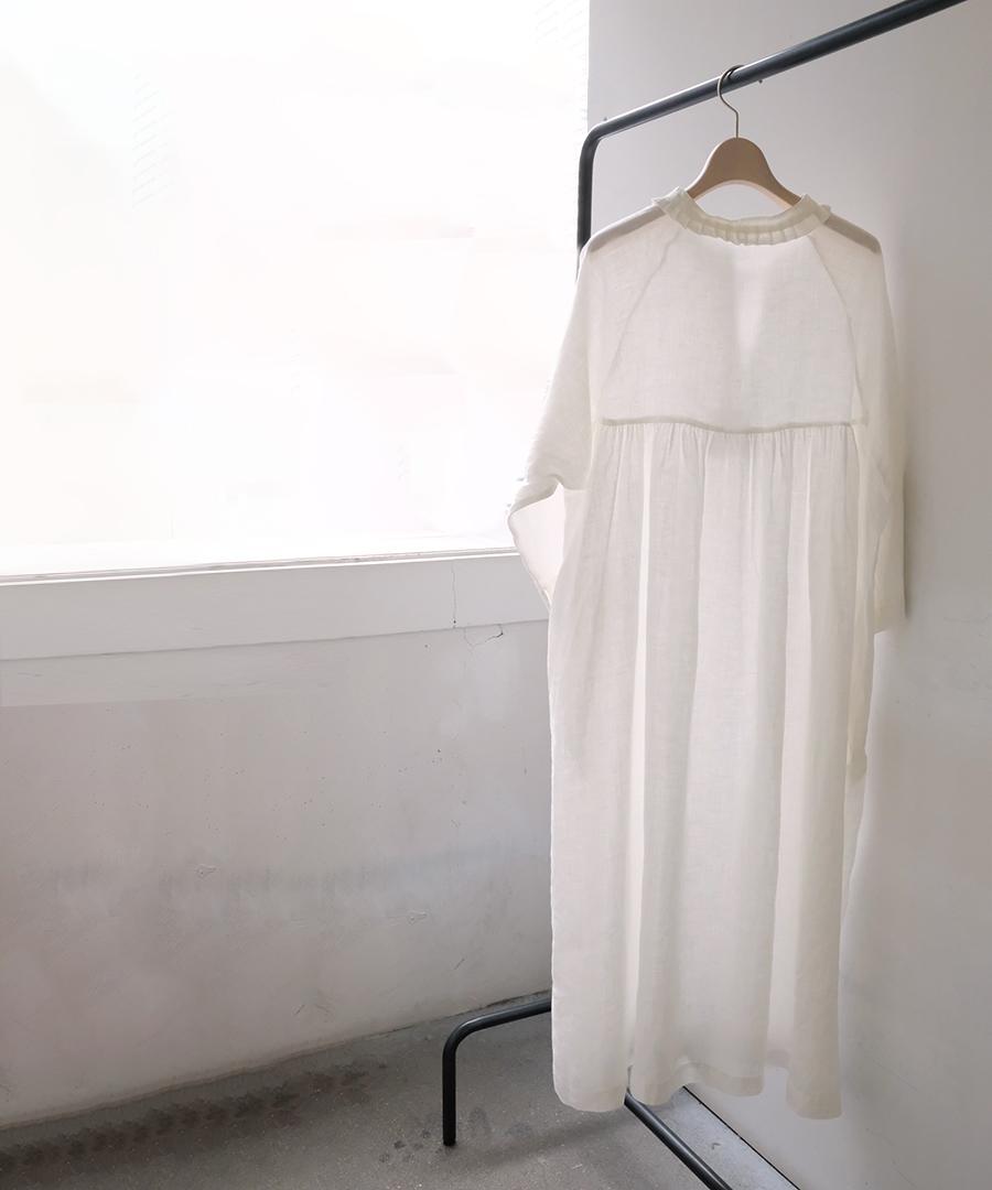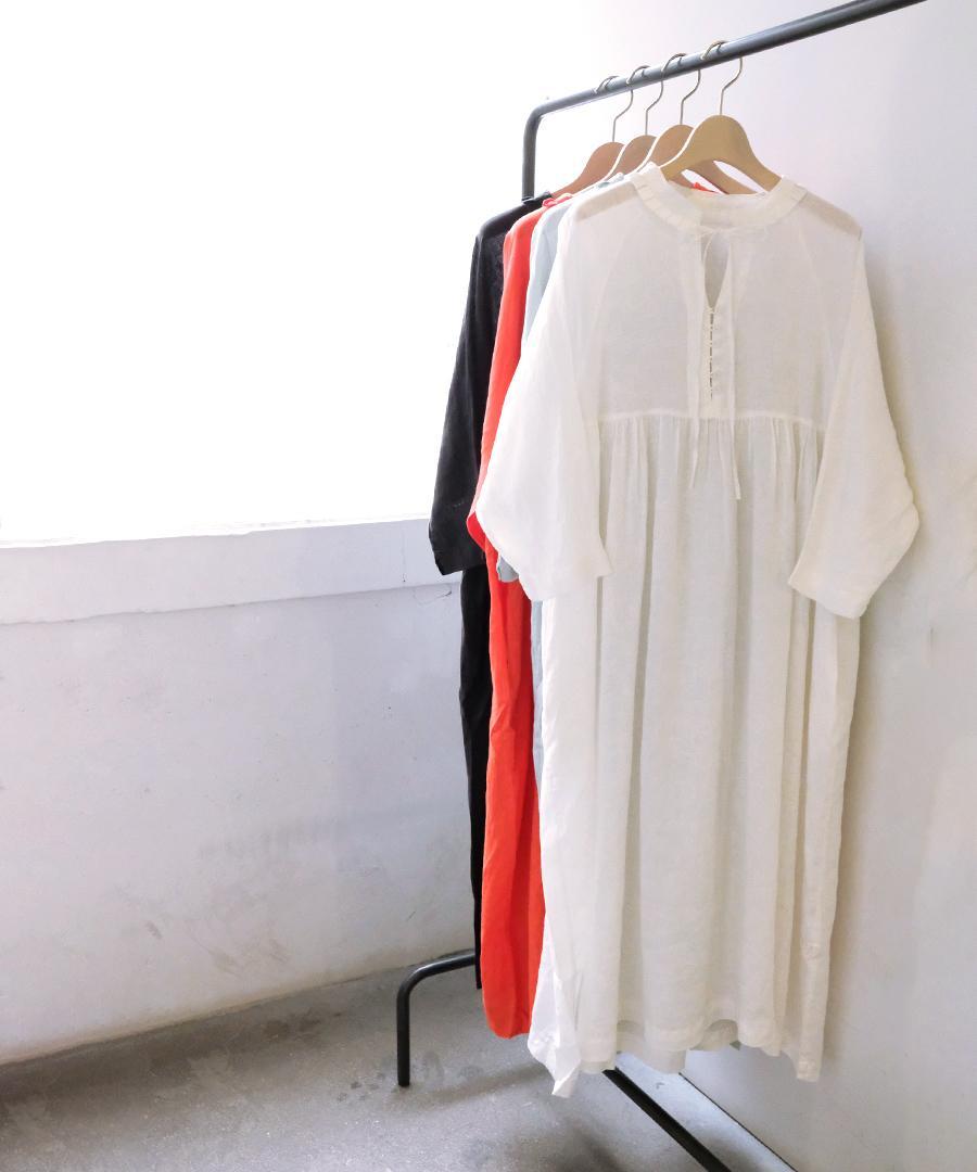 さらりとした肌触りの良いリネンキャンバス素材で仕立てたワンピース。