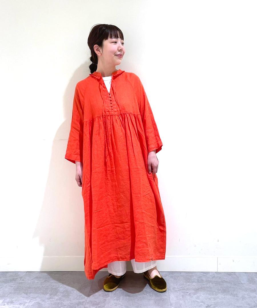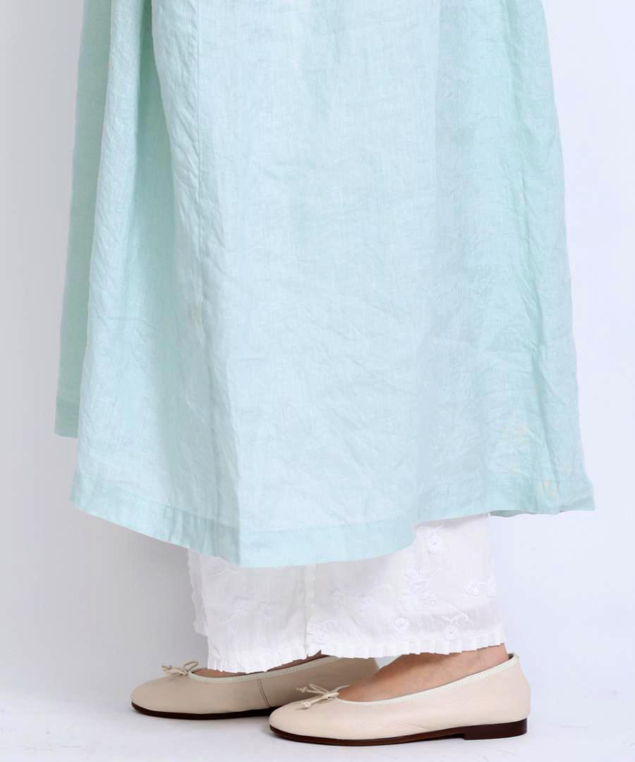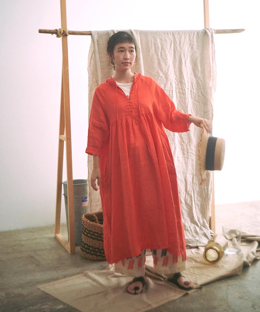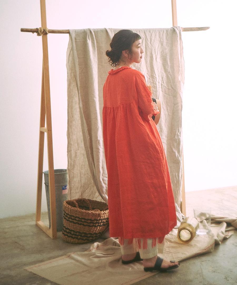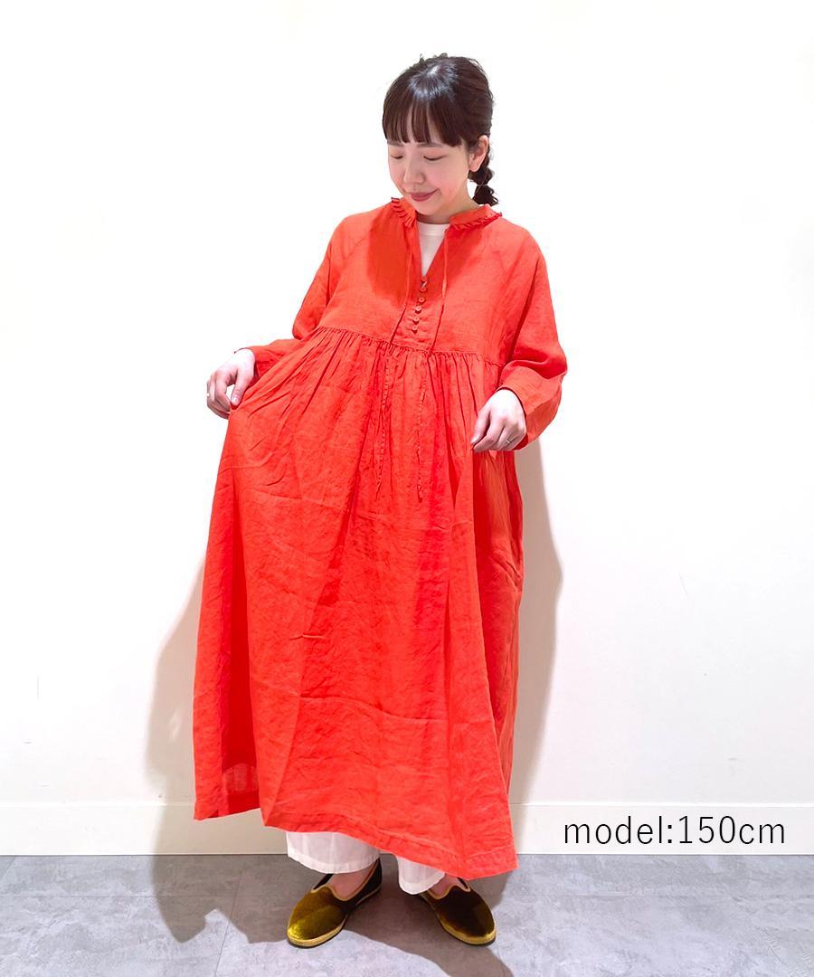 さらりとした肌触りの良いリネンキャンバス素材で仕立てたワンピース。
