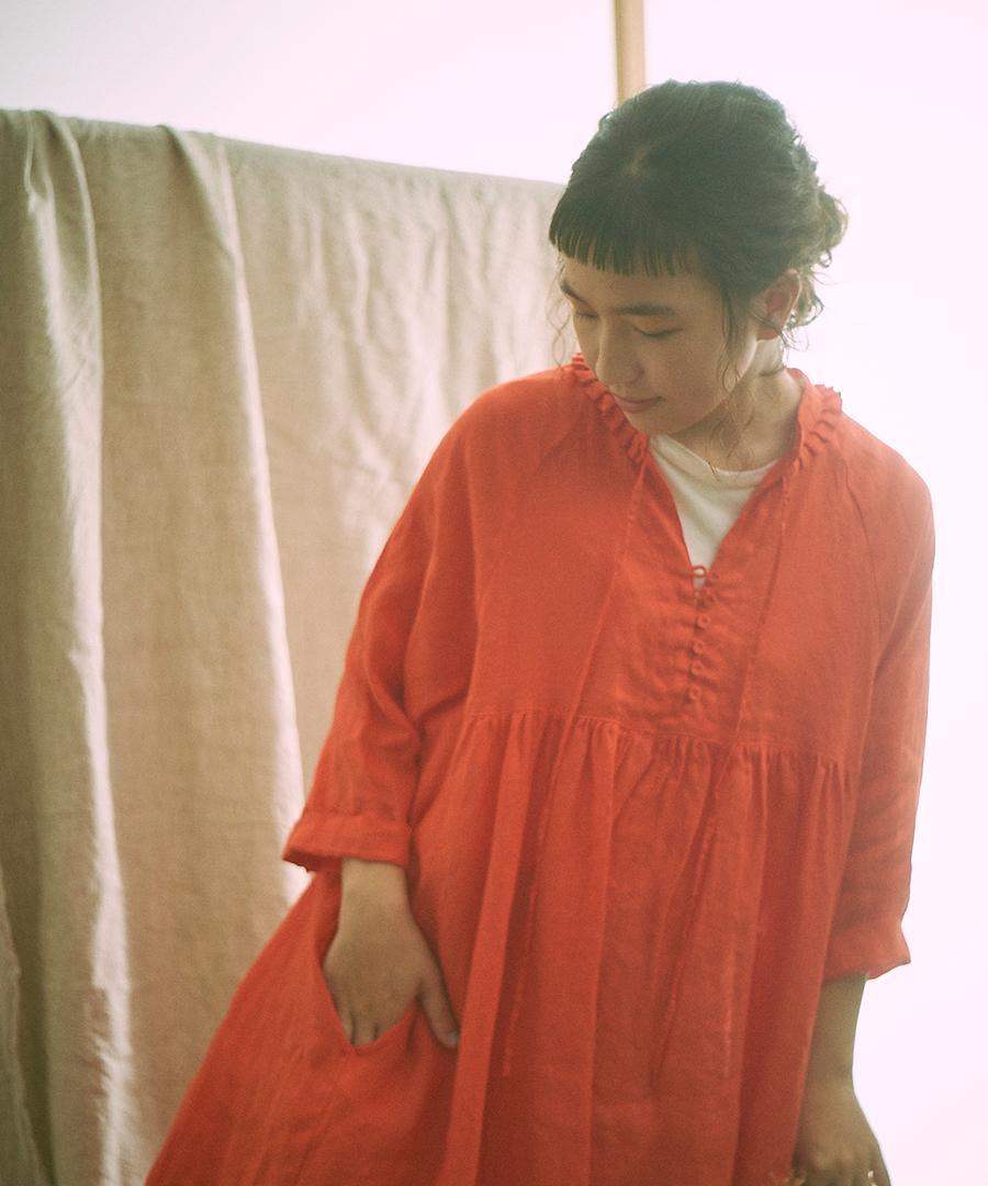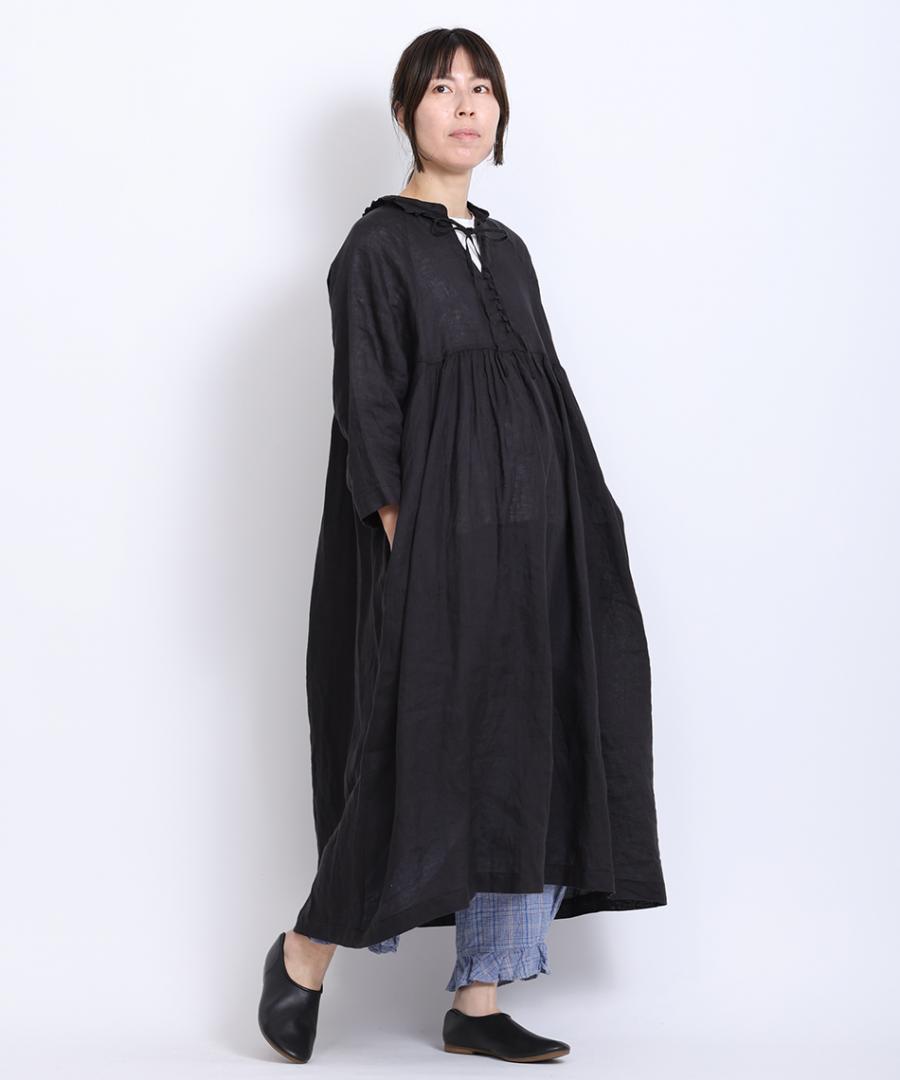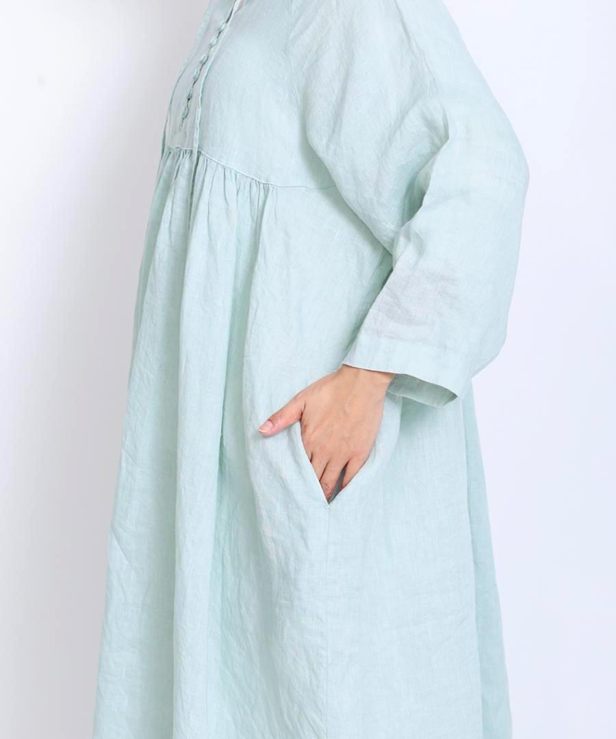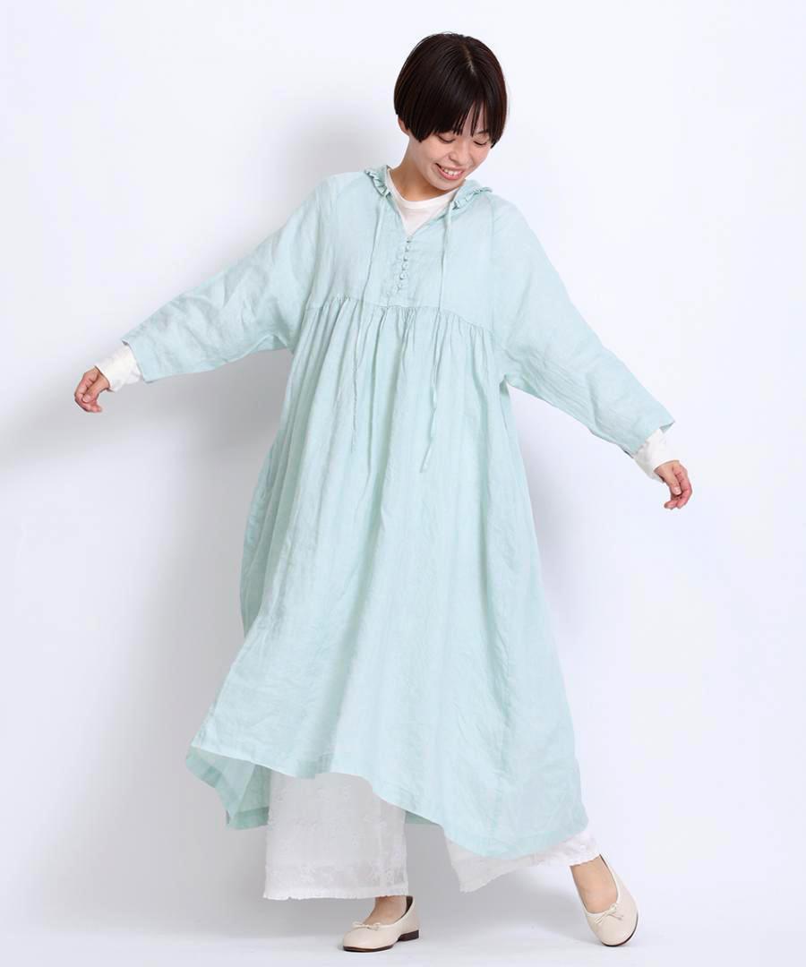 さらりとした肌触りの良いリネンキャンバス素材で仕立てたワンピース。