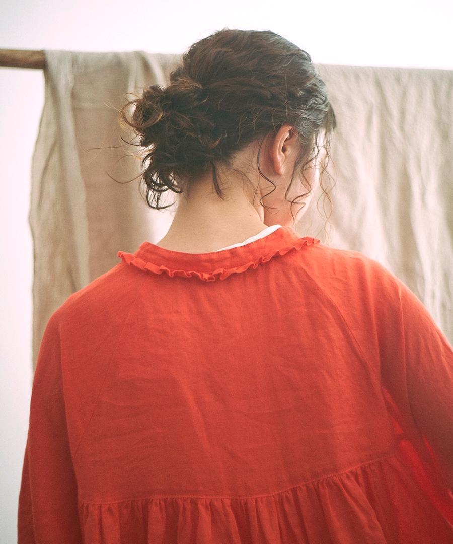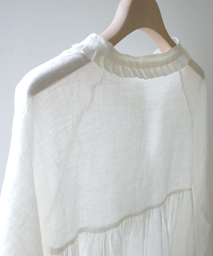 やや透け感のある素材ですので、インナーと合わせて首元や袖からインナーをちらっと見せるレイヤードスタイルもおすすめです。