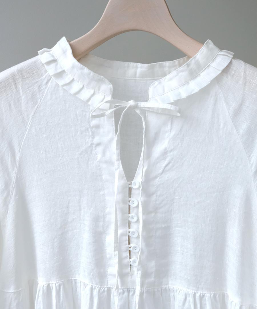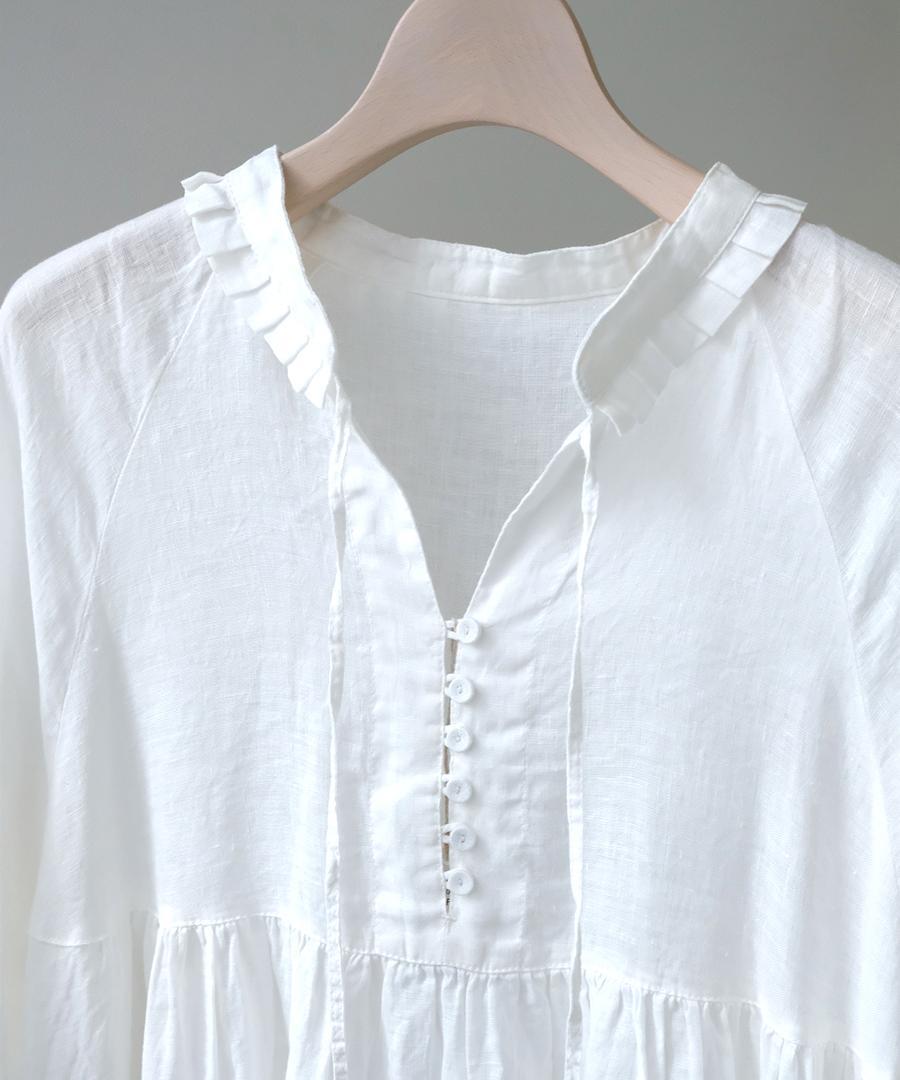 襟元のタックフリルが上品でクラシカルな雰囲気です。