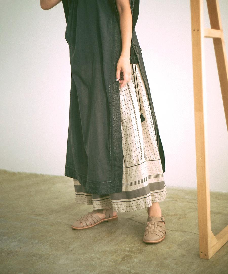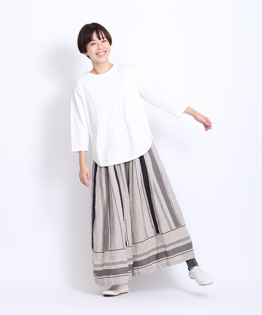 生地をたっぷりと使ったワイドなシルエットでスカート見えするデザイン。