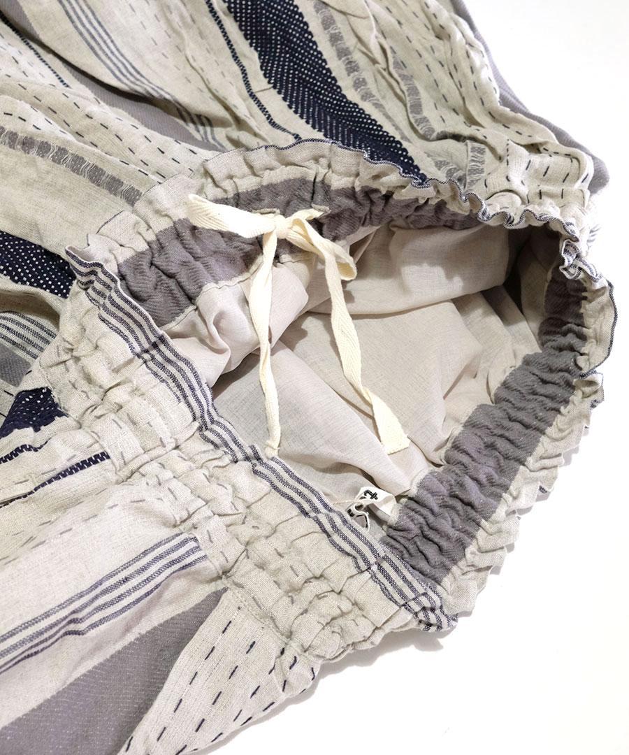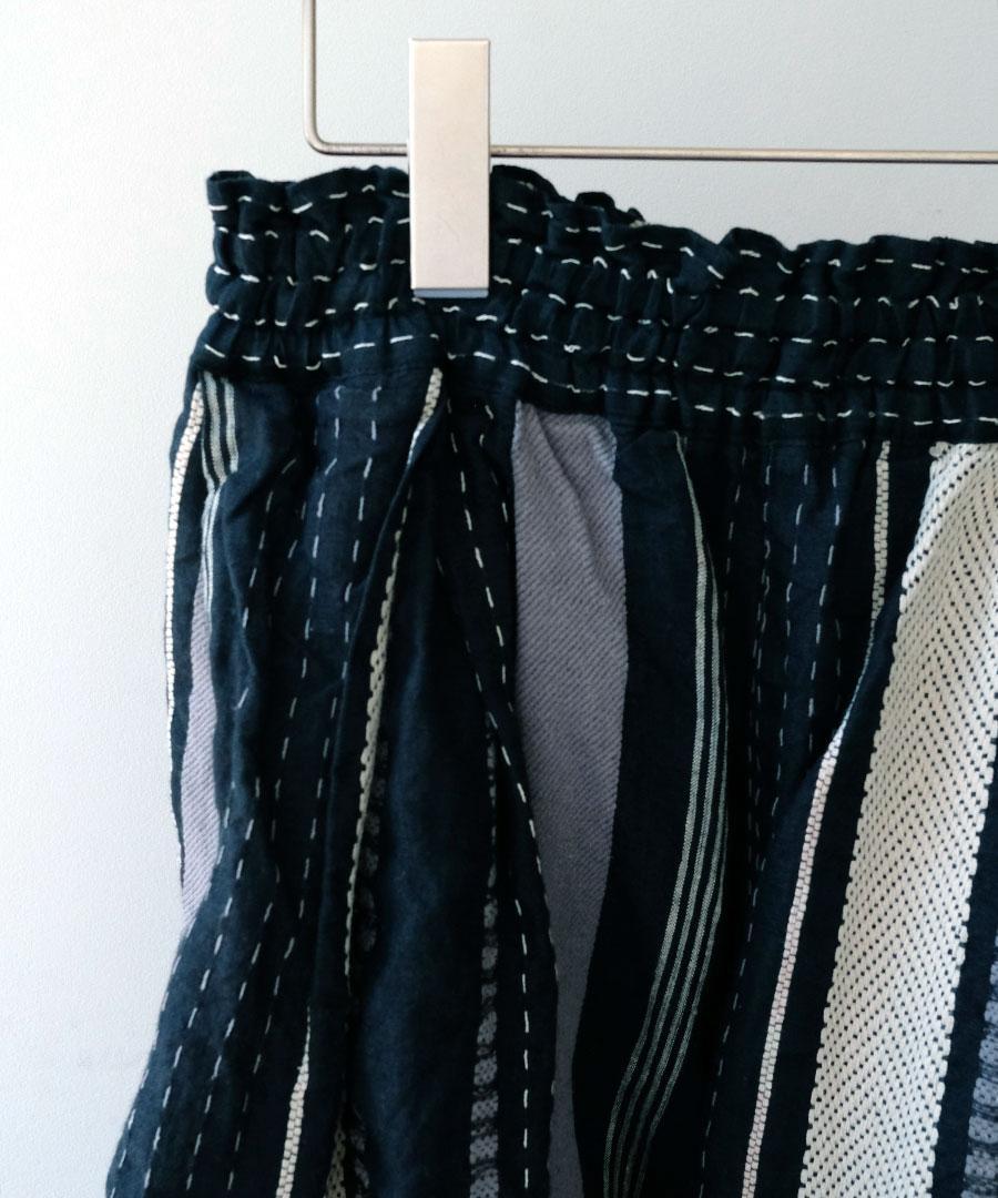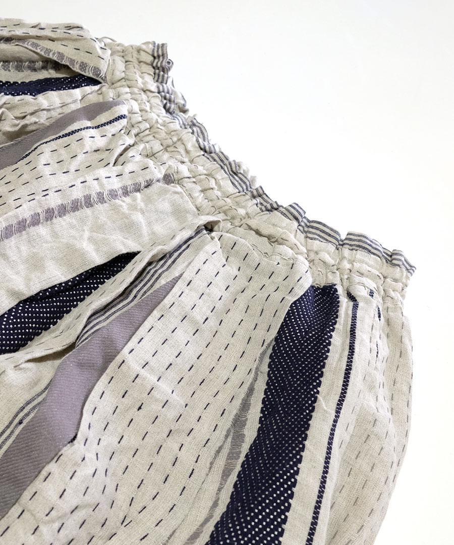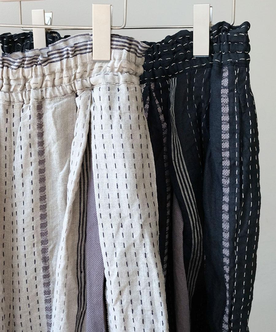 ランダムな配置のストライプ柄がパッと目を惹くデザインで、ナチュラルな風合いが魅力のパンツです。